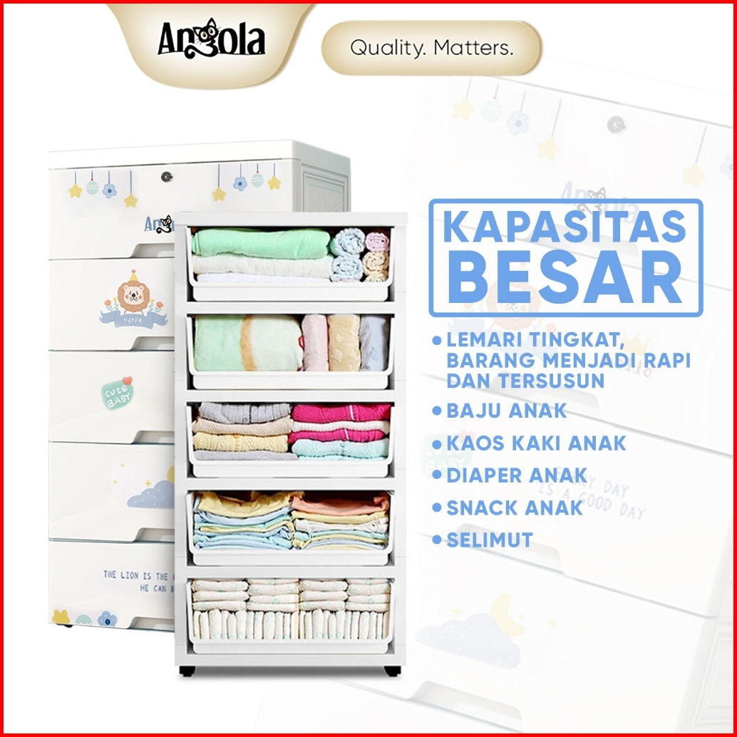 Angola Lemari Plastik Pakaian C64 C65 Lemari Penyimpanan Pakaian Mainan Anak Wardrobe Storage