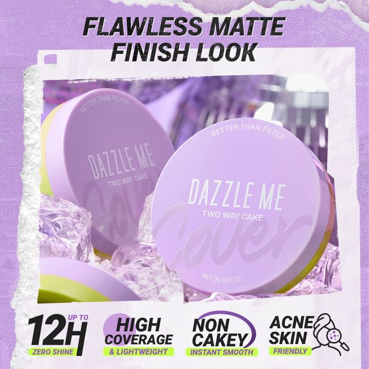 Make Up Bundle DAZZLE ME Double Coverage - High Coverage Cushion Long Wear Fast Oil Fix Silky Powder - Cushion & Powder