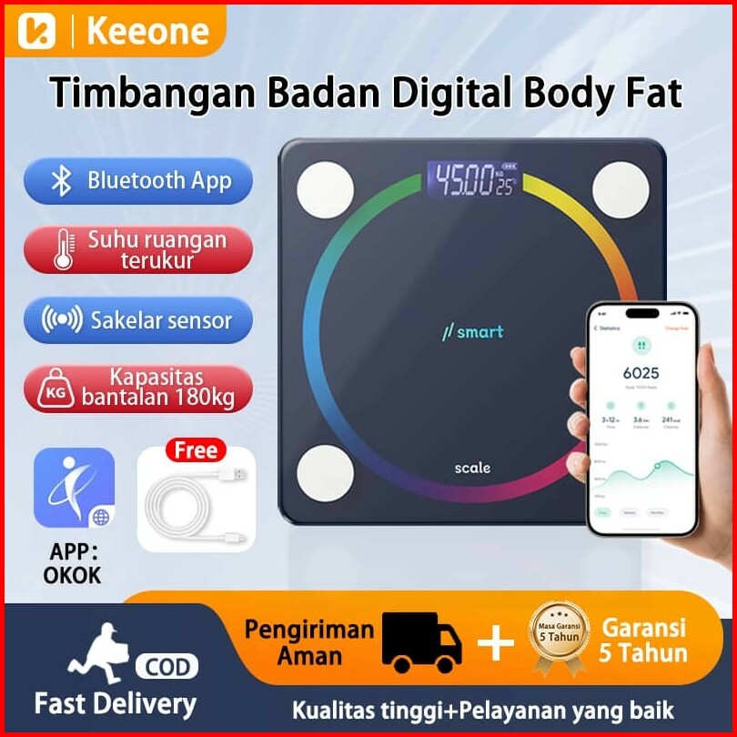 Keeone Timbangan Badan Digital Body Fat 180kg Timbangan Berat Badan Digital Usb Charger Dengan App Layar Led Tampilan Di