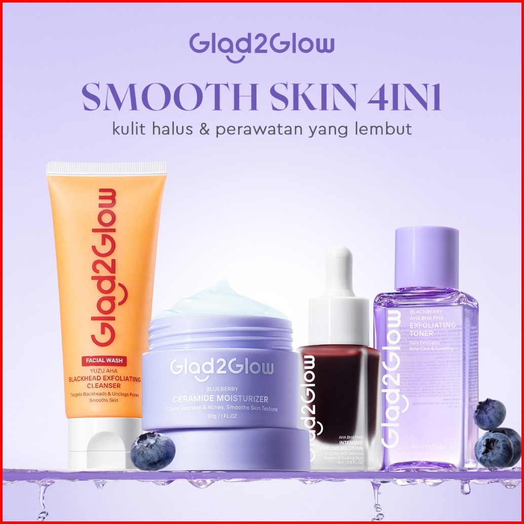 Smooth Skin Set Glad2glow Bundle All In 1 - 2 3 4 5 Pcs Blueberry Moisturizer Peeling Solution Yuzu Aha Blackhead Exfoli