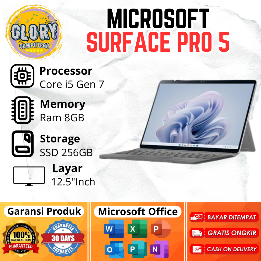 Microsoft Surface Pro 5 Core i5 Gen 7 Ram 8GB SSD 256GB, Layar 12.5"Inch ( Touchscreen + Keyboard )