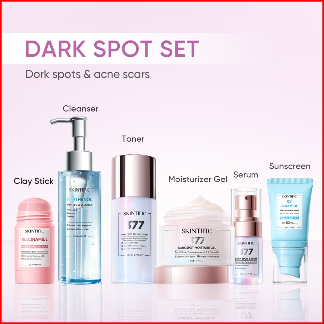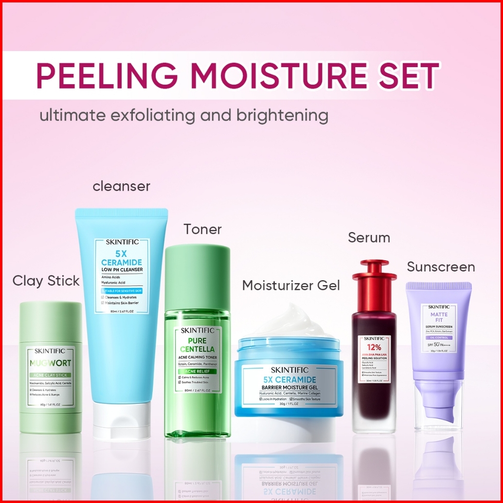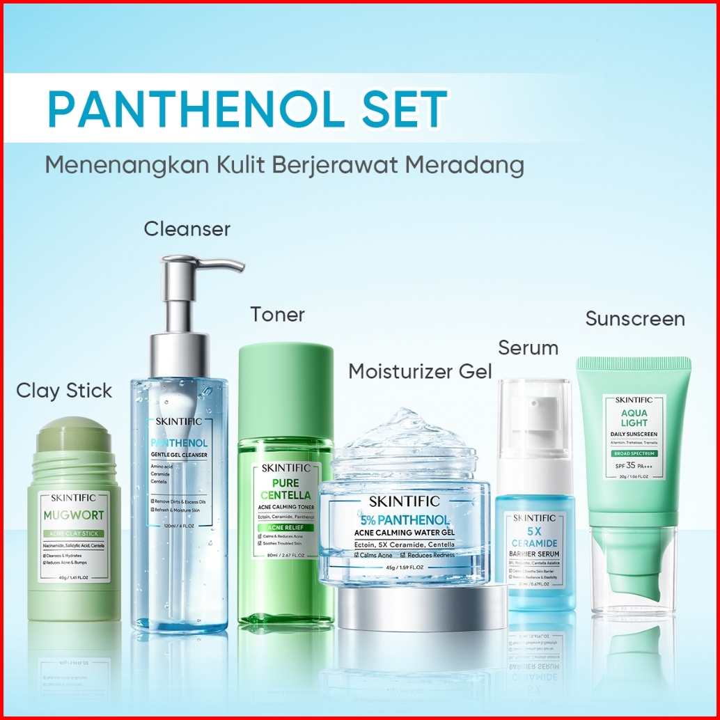 Skintific-6pcs Paket-skincare Set Serum Moisturizer Gel Toner Sunscreen Cleansing Mouss Facial Wash Day Night Cream Acne