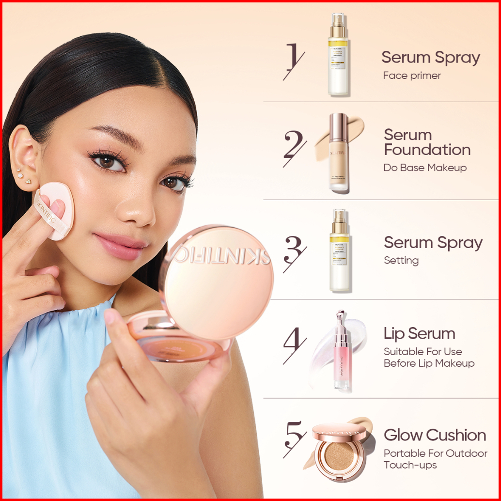 Skintiflc - Dewy Finish Makeup Series Makeup Set Serum Foundation Glowing Setting Finishing Spray Makeup Lip Serum Glod