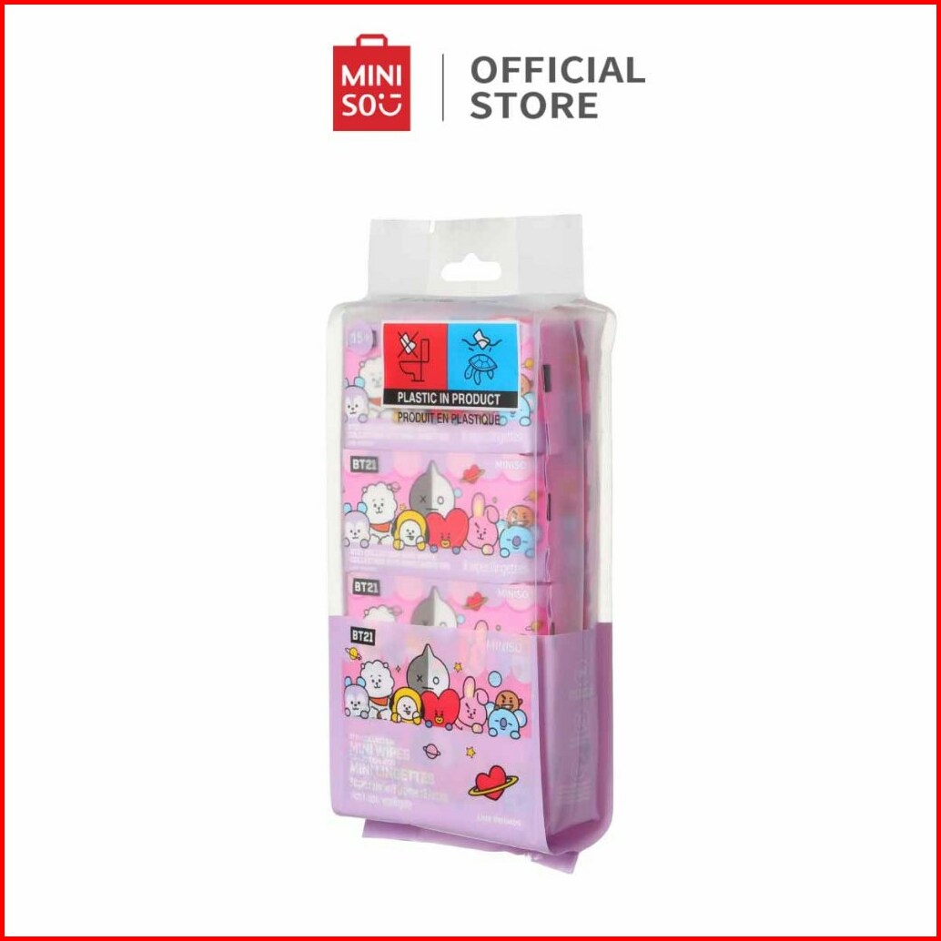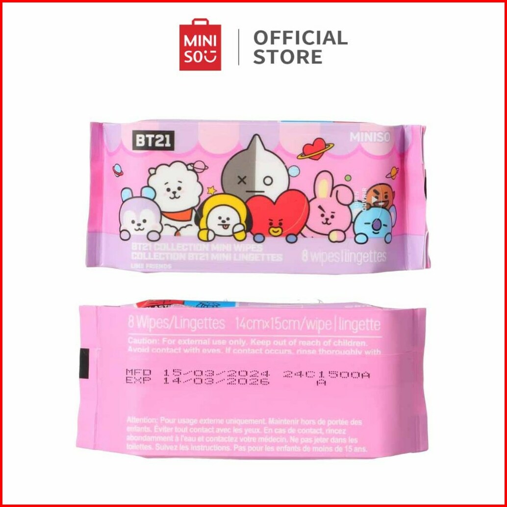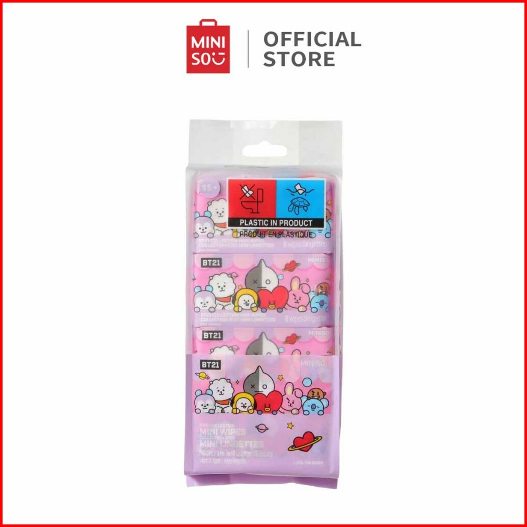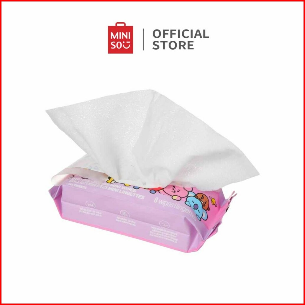 Miniso X Bt21 Collection Tisu Basah Travel Ultra-mini Wet Wipes 8 Packs 8 Sheets