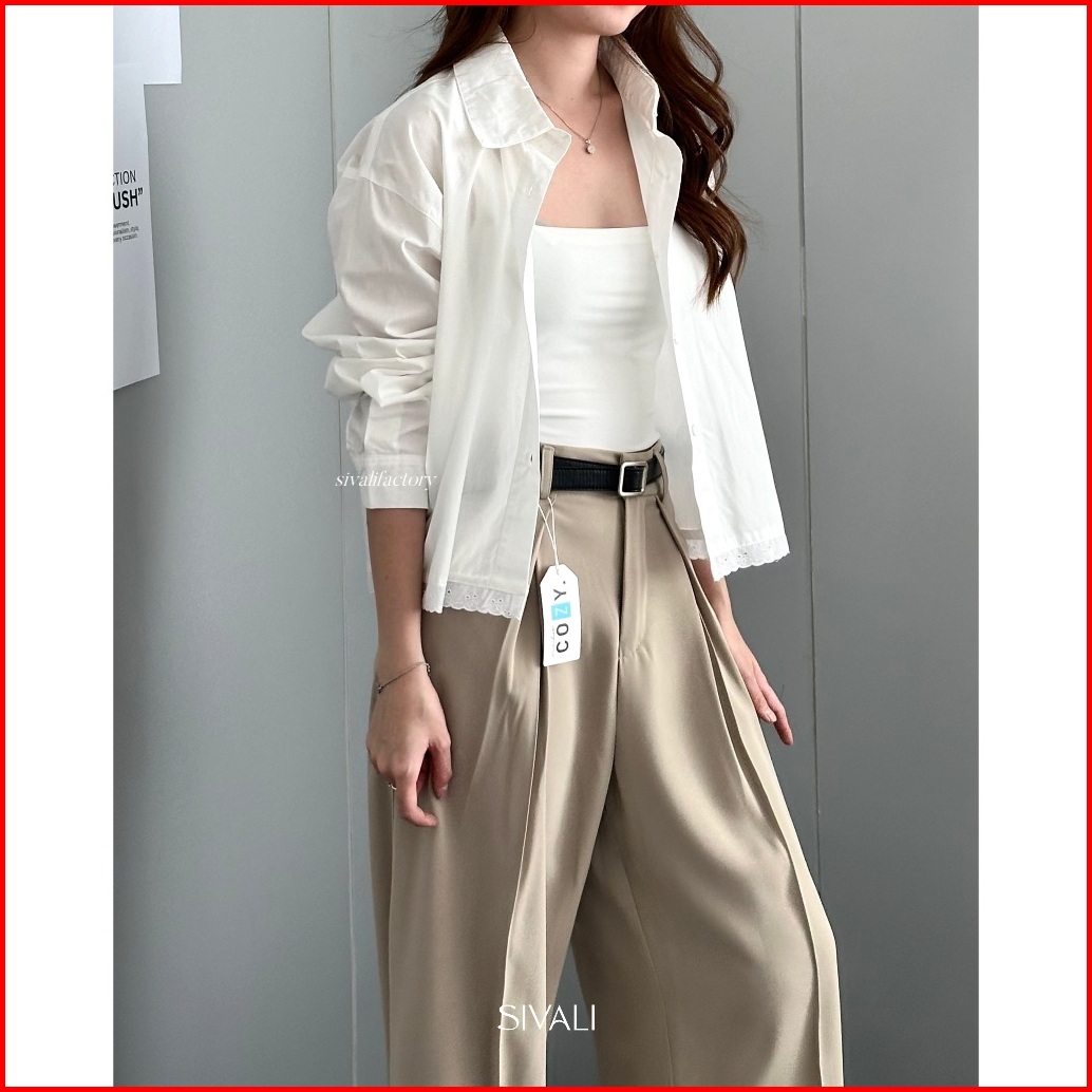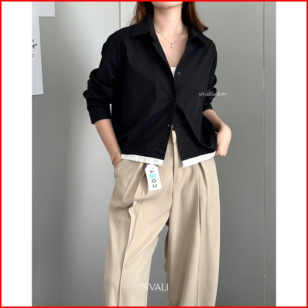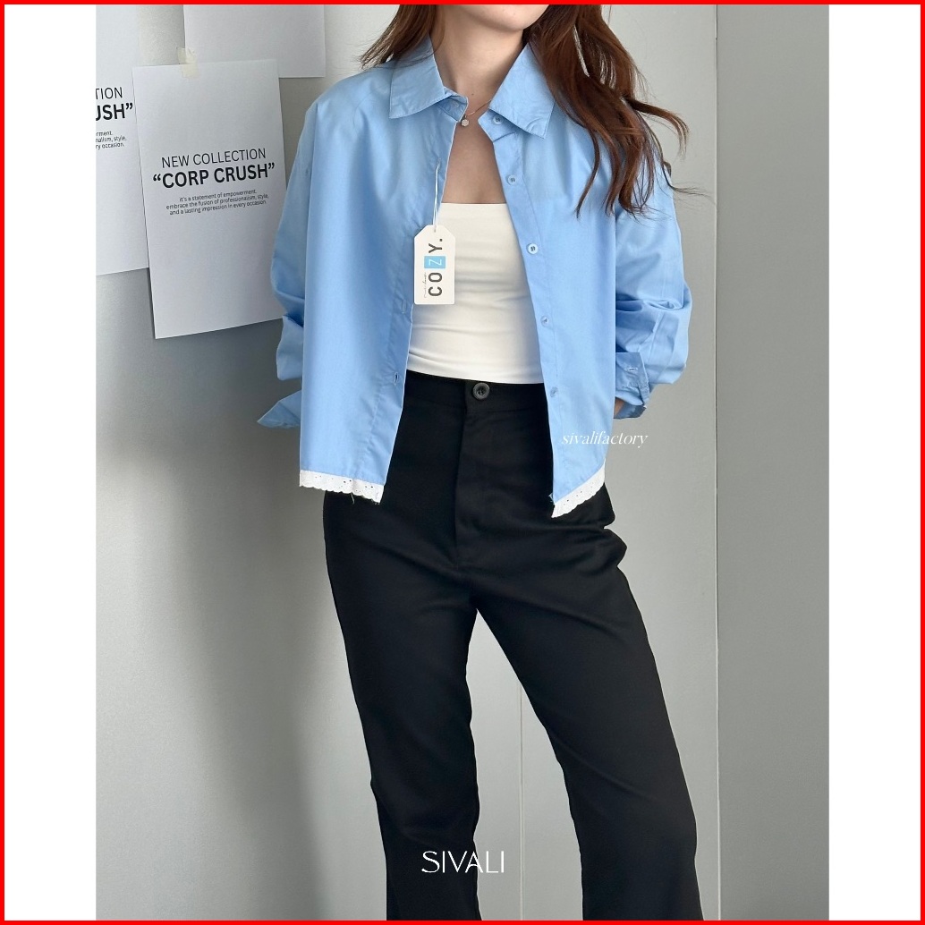 Sivali Mille Oversized Crop Shirt - Atasan Kemeja Wanita Oversize Lengan Panjang - Kemeja Kantor Formal Casual 1922