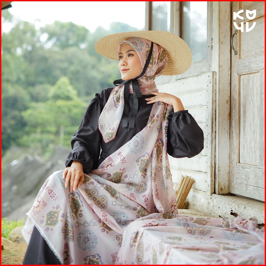 Koyu Hijab Segiempat Viney Jepang Motif Ethnik Wonderland New
