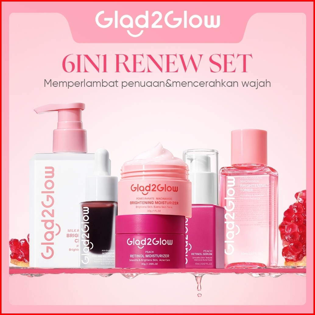 Glad2glow Renew Bundle 7in1 -brightening Toner Brightening Moisturizer Milk Cleanser Brightening Serum Peeling Solution