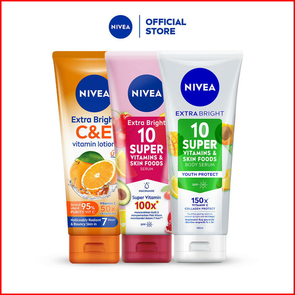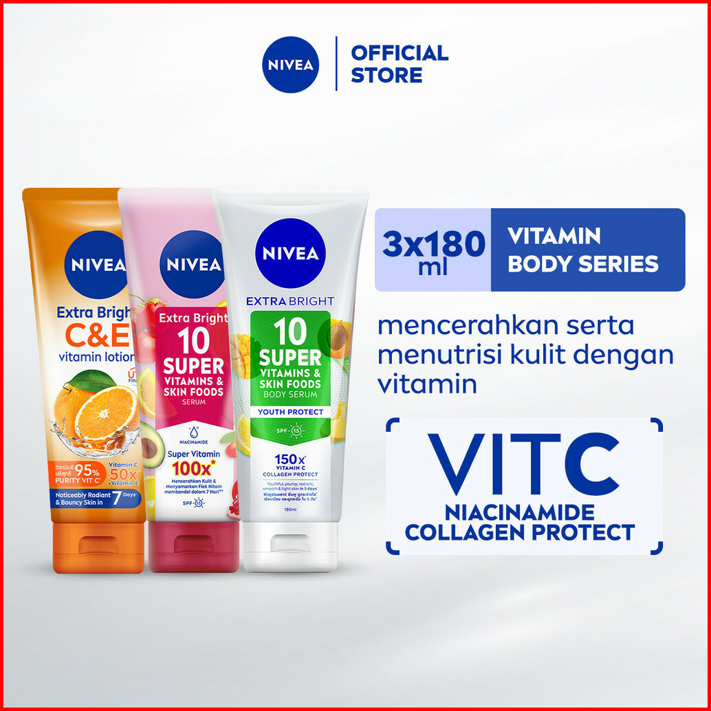 Nivea Body Serum Extra Bright Vitamin Series Niacinamide Collagen C E 180ml X3 - Mencerahkan Menyamarkan Noda Hitam Kuli