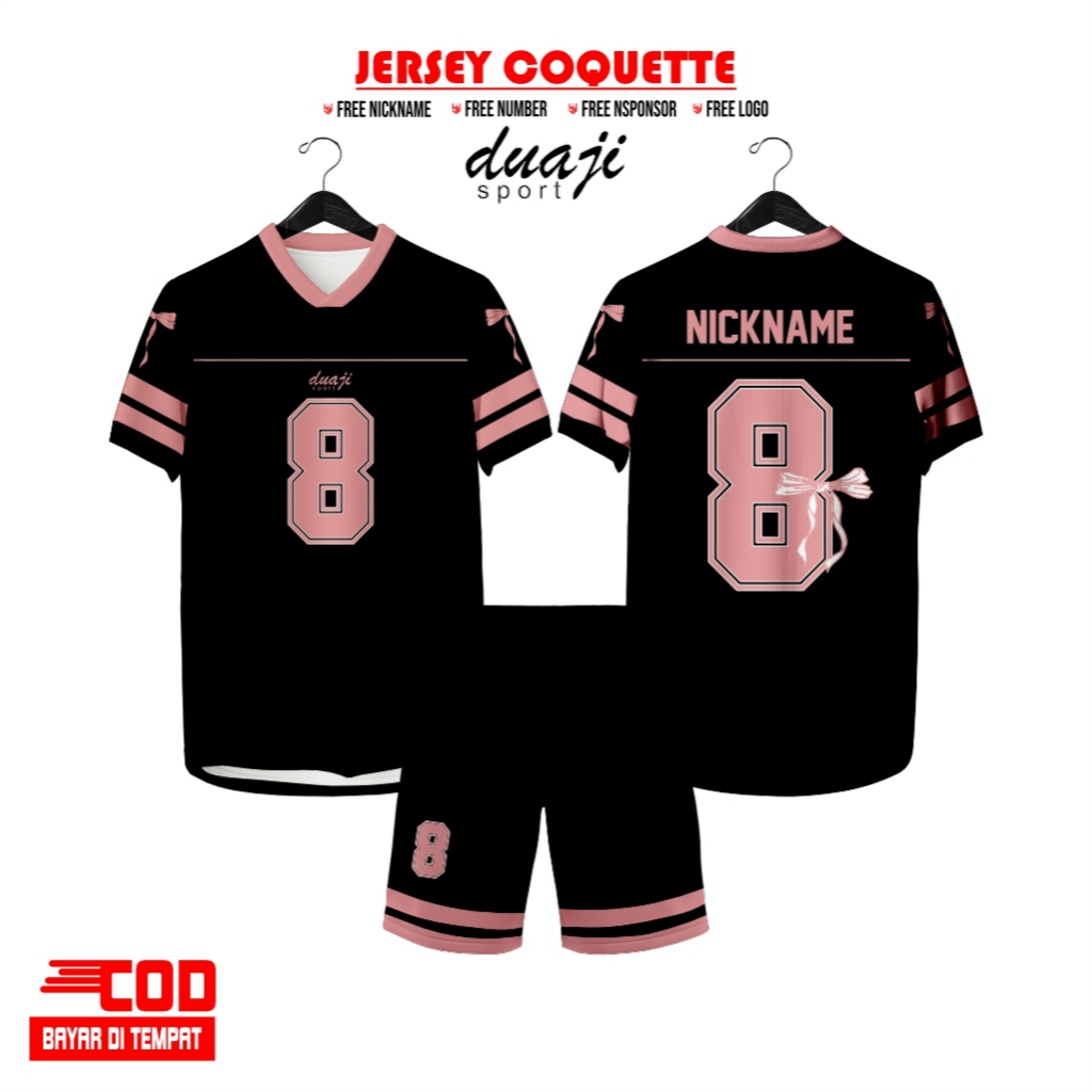 COQUETTE - RIBBON HITAM KOREAN GIRL TERBARU FULL PRINTING JERSEY VOLY FUTSAL TENIS CUSTOM NAMA