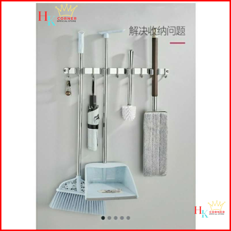 Hk Tempat Penjepit Gantungan Sapu Pel Mop Broom Holder Gantungan Stainless Steel Sus 304