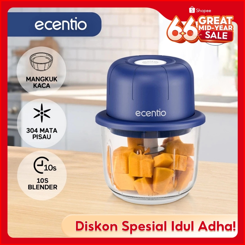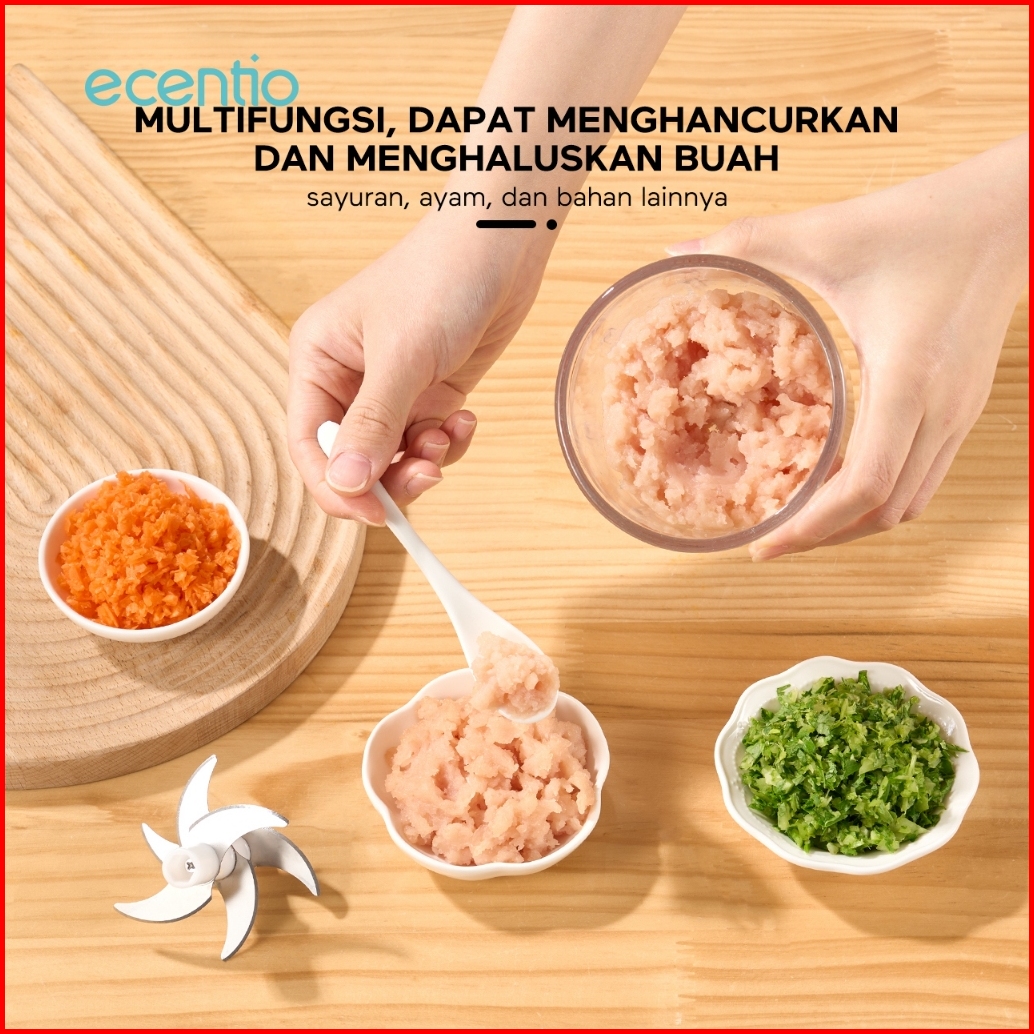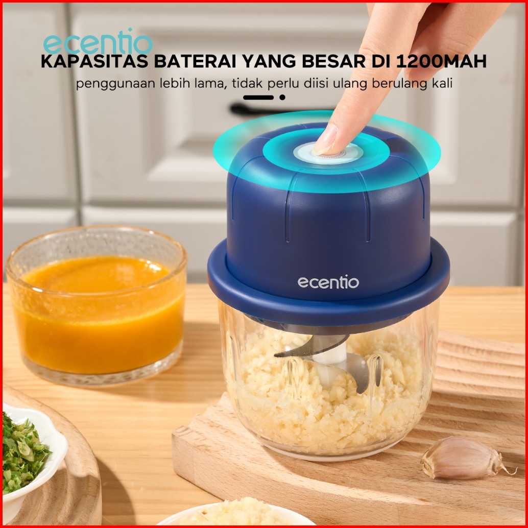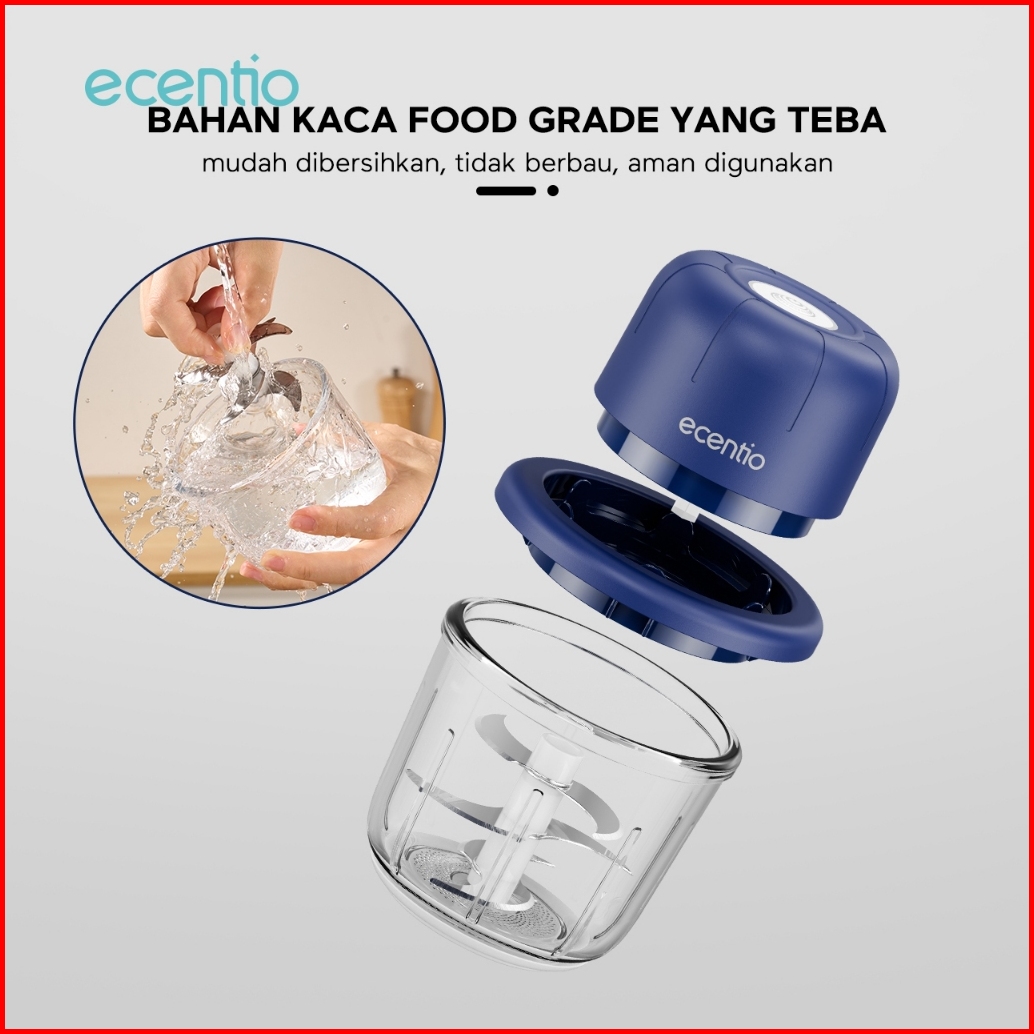 Ecentio Mini Chopper Kaca Blender Portable 6 Pisau 350ml Food Grade Penghalus Bawang Multifungsi Food Processor Elektrik