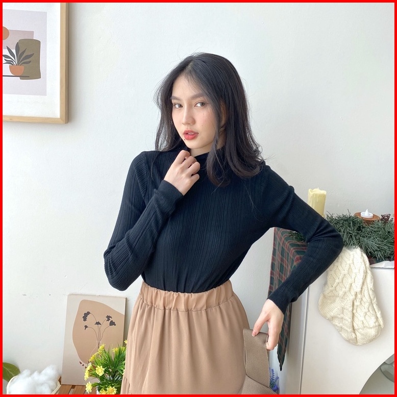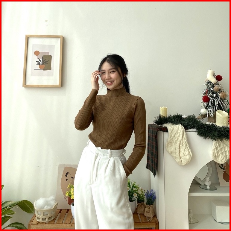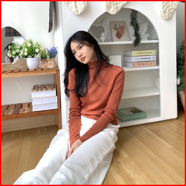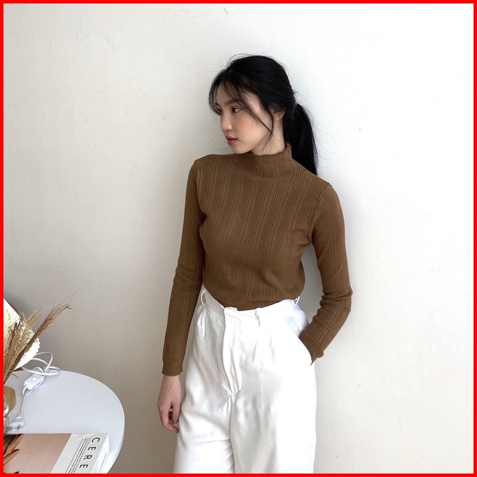 Kaorithelabel Haye Top High Neck Top Rajut - Turtleneck Wanita