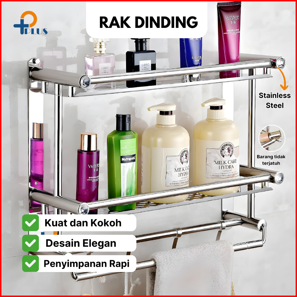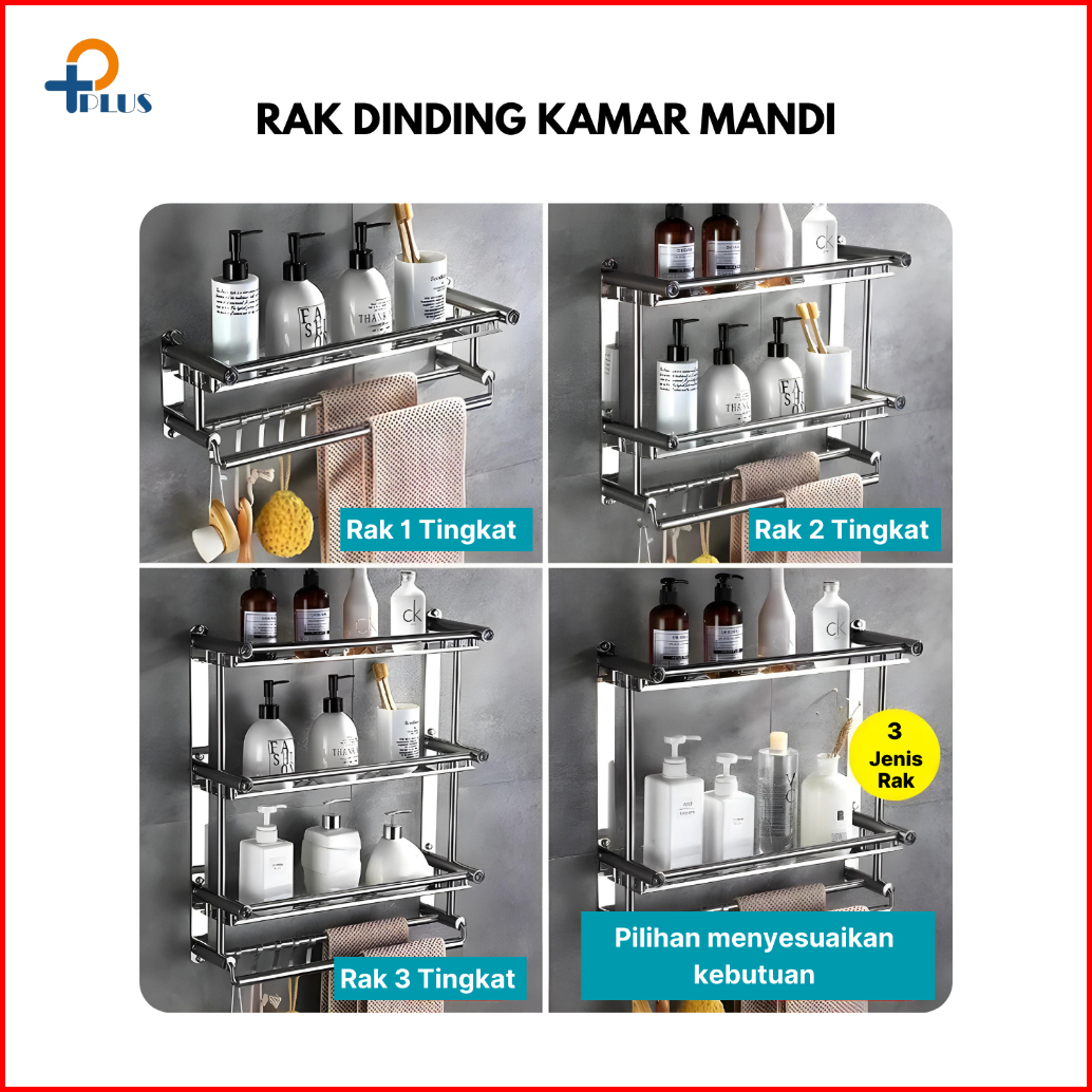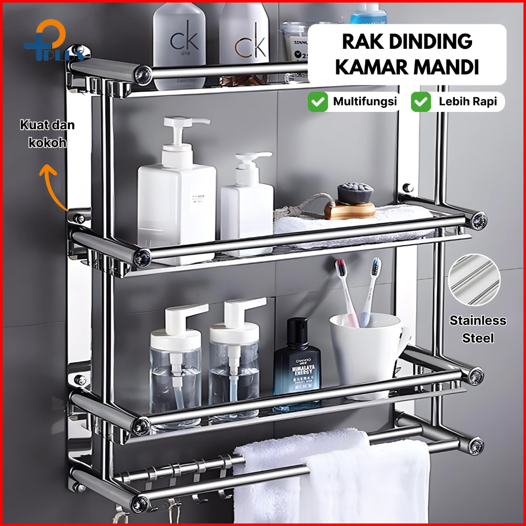 Pplus Rak Kamar Mandi Stainless Gantungan Handuk Model Tanpa Mesin Bor Sus304 Lem Super Kuat Rak Handuk Gantungan Dindin