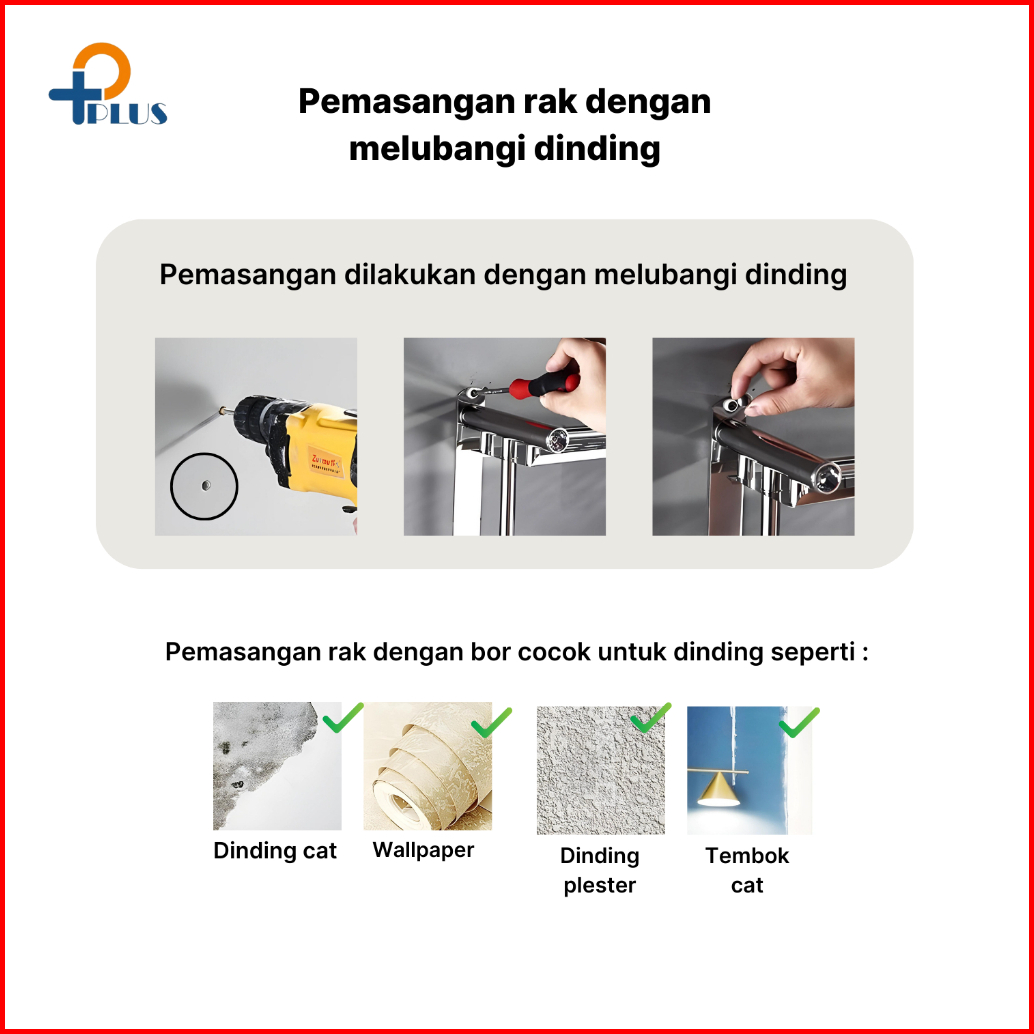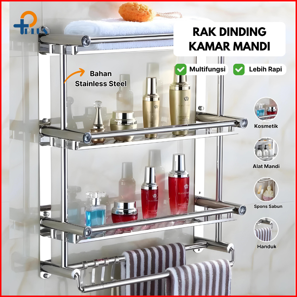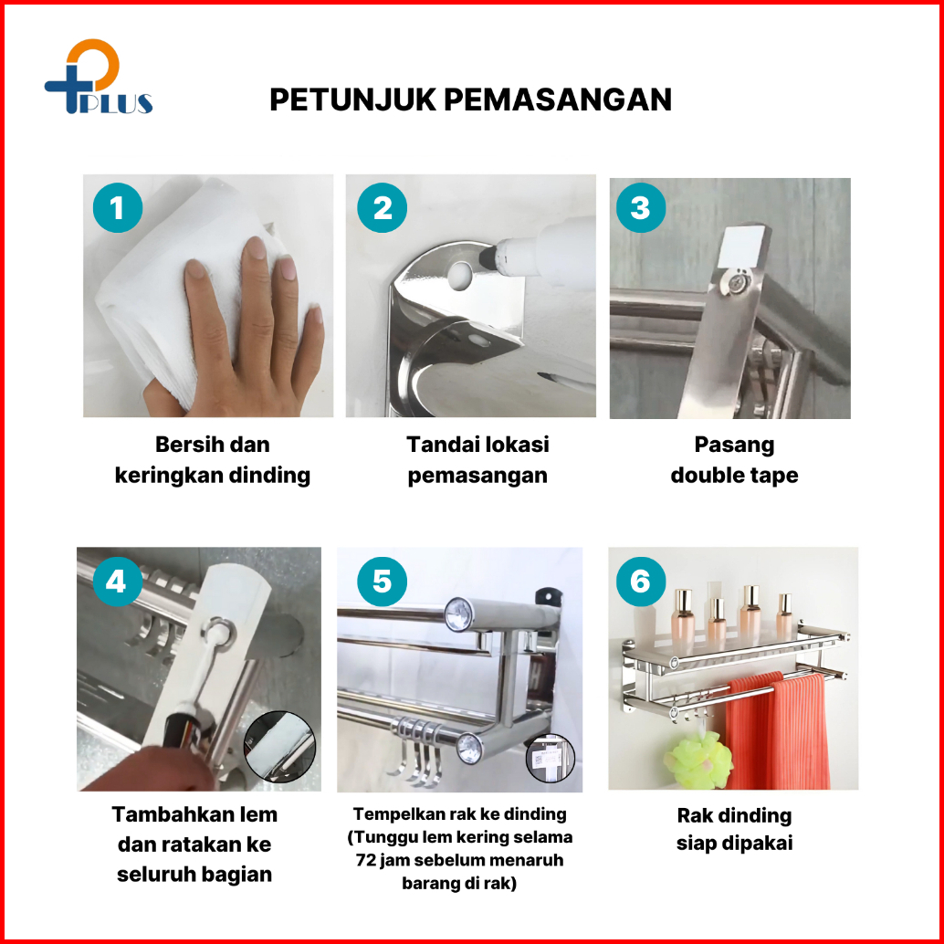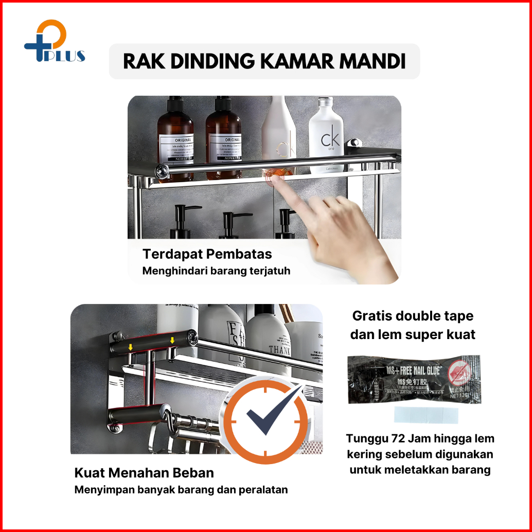 Pplus Rak Kamar Mandi Stainless Gantungan Handuk Model Tanpa Mesin Bor Sus304 Lem Super Kuat Rak Handuk Gantungan Dindin