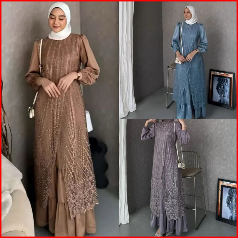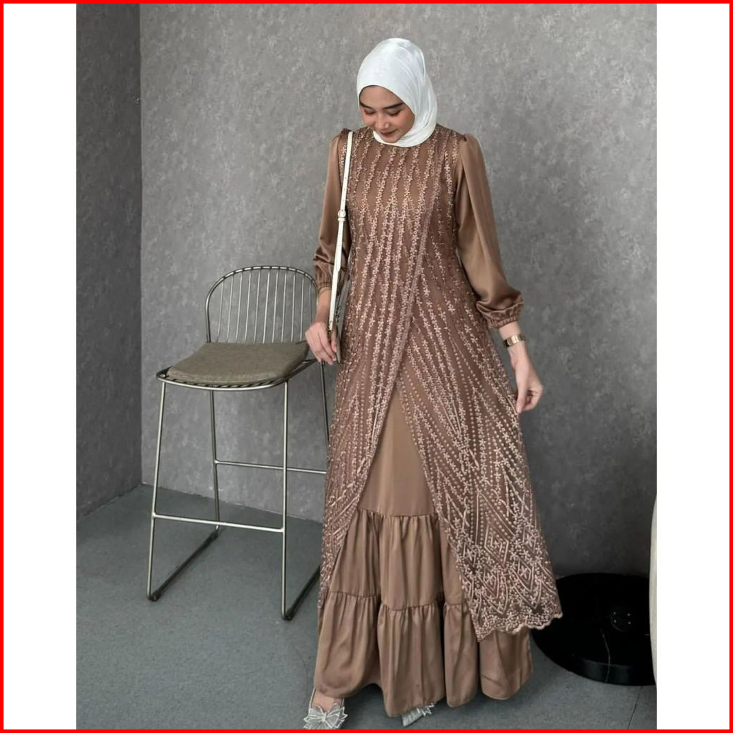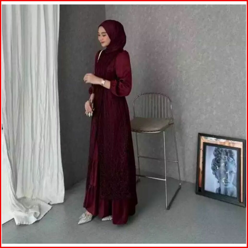 Gamis Brukat Premium Terbaru Olivia Dress Kondangan Vilvet Mix Brokat Tille Akar Layer Remple Depan