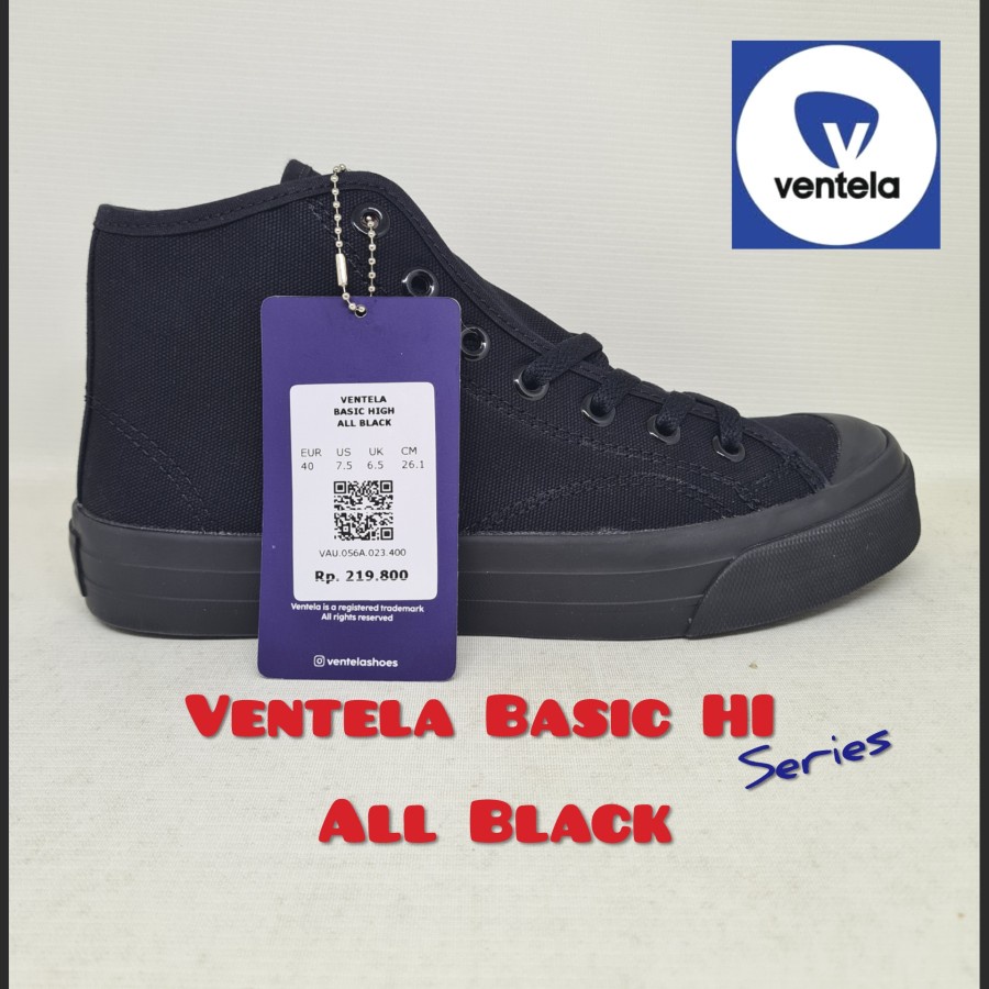 Ventela Ethnic High Full Black All Black | Sepatu Sekolah Hitam Vantela Ventella Ethnic Basic High Original