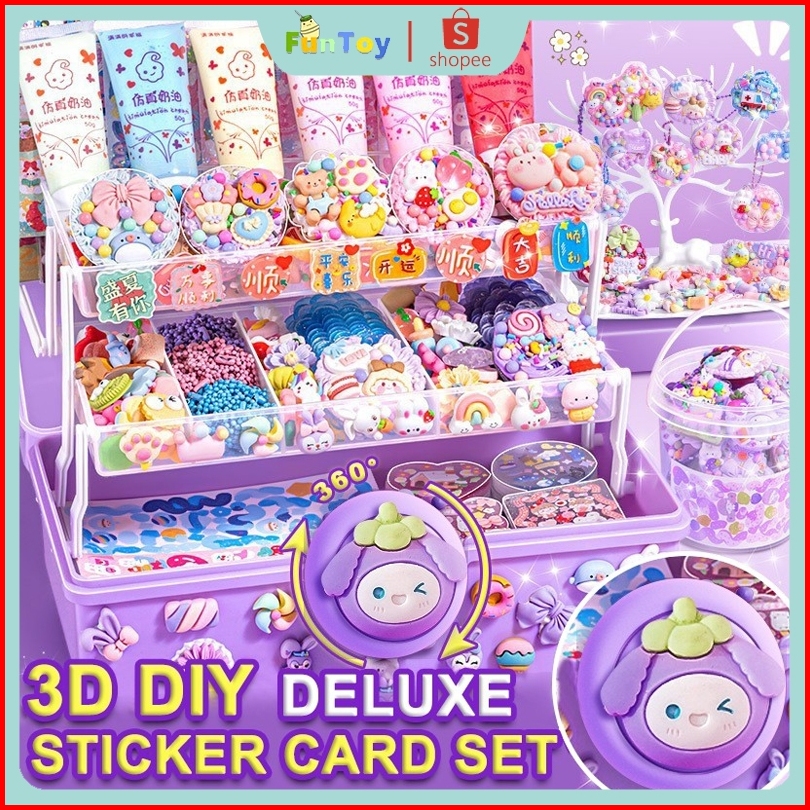Funtoy 220 264 303 323 Pcs Mainan Anak Diy Cream Set Gantungan Kunci Akrilik Set Stiker Lem Krim Kreatif Cream Kartun