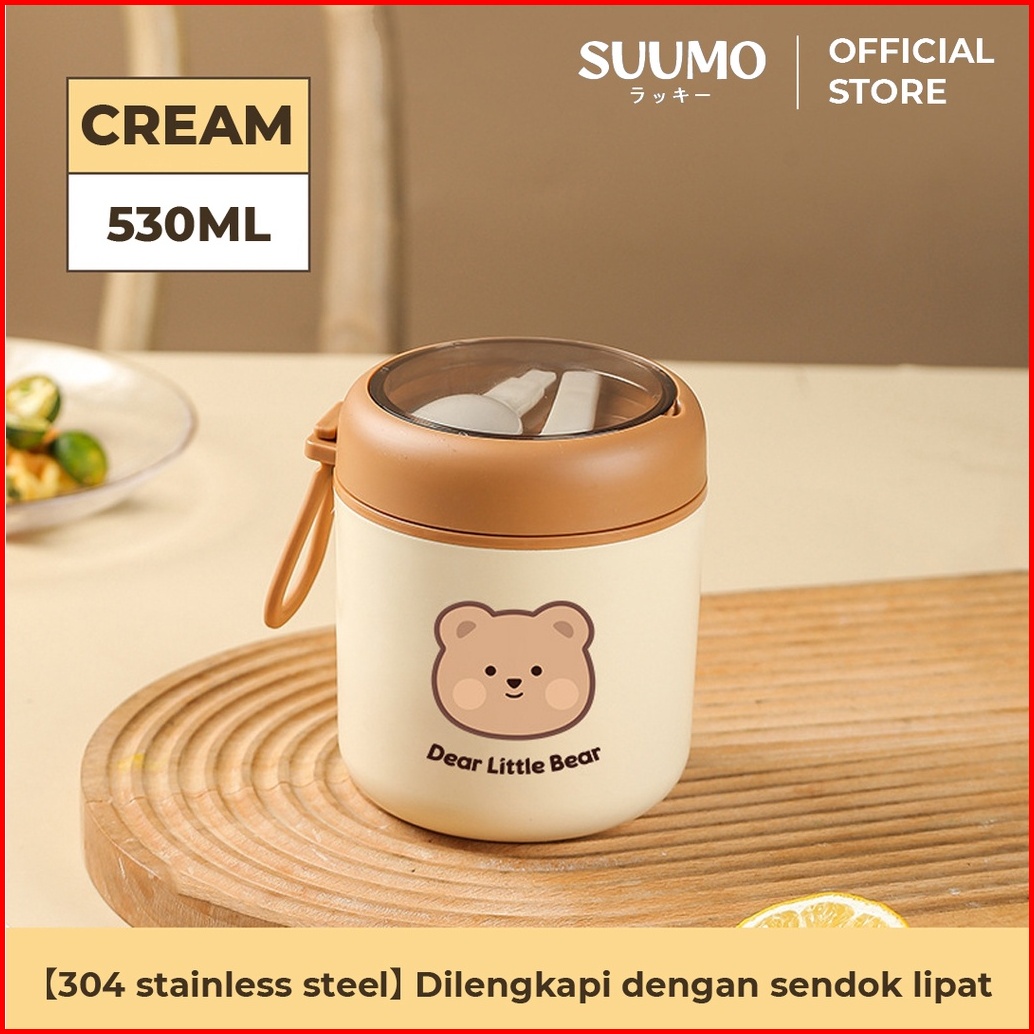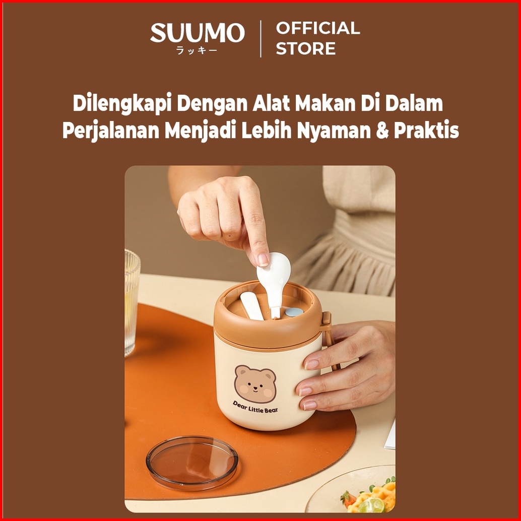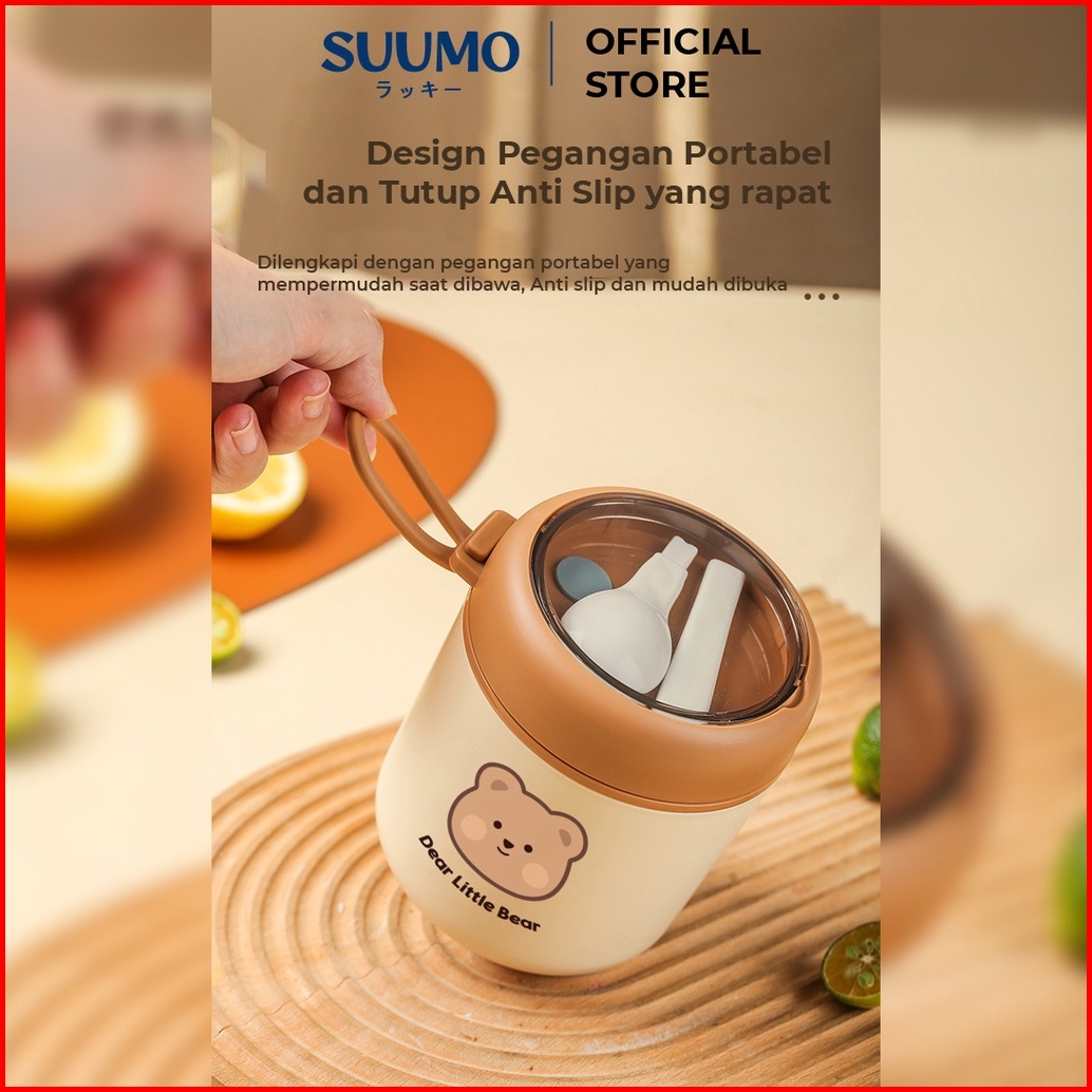 Suumo Cangkir Sarapan Sup Korea Dengan Tutup Sendok Cangkir Oatmeal Portabel 530ml