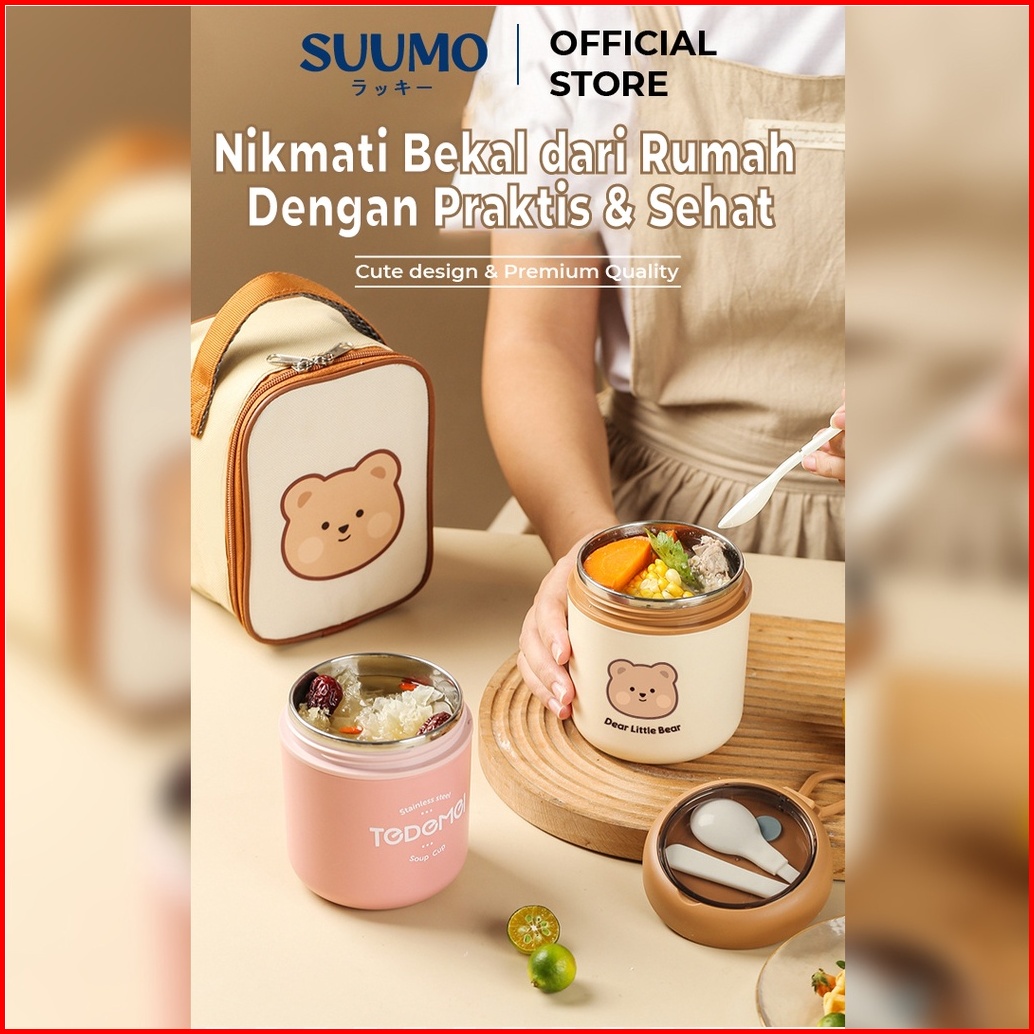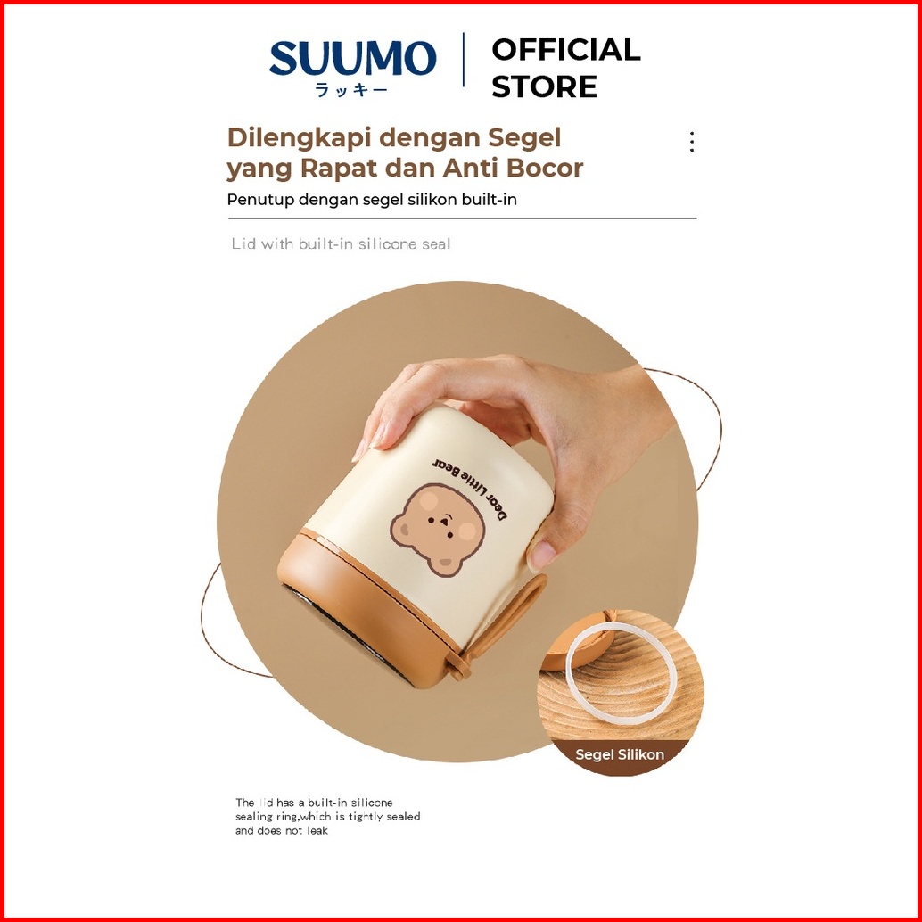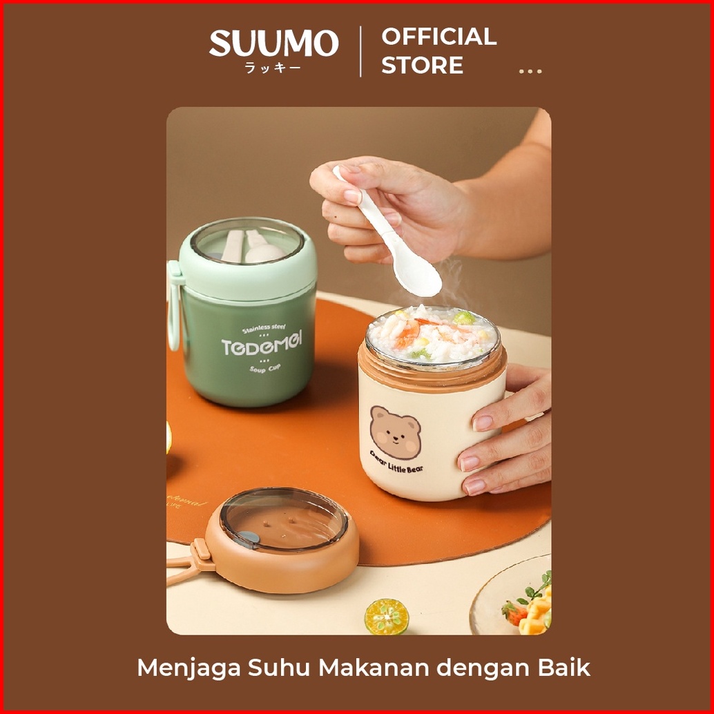 Suumo Cangkir Sarapan Sup Korea Dengan Tutup Sendok Cangkir Oatmeal Portabel 530ml