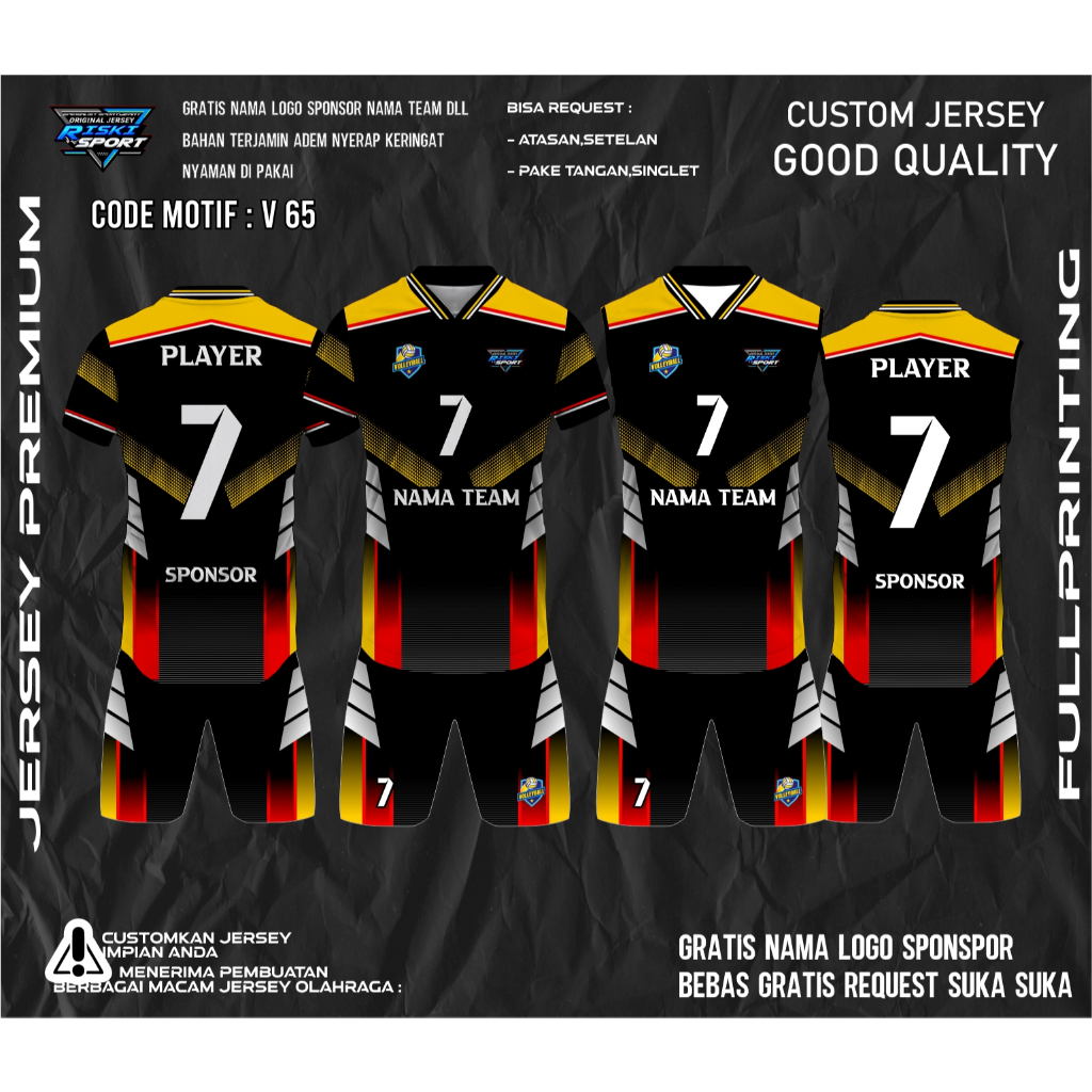 Jersey baju kaos olahraga voli volley voly bola voli sepakbola futsal gratis nama nomor logo sponsor v65