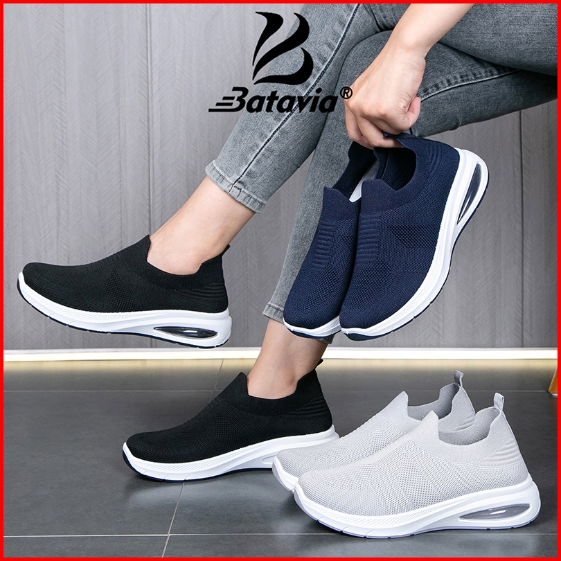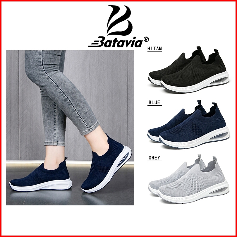 Batavia Grosir Sepatu Wanita Rajut Sepatu Tanpa Tali Hitam Sepatu Wanita Sport Women Sneakers N58