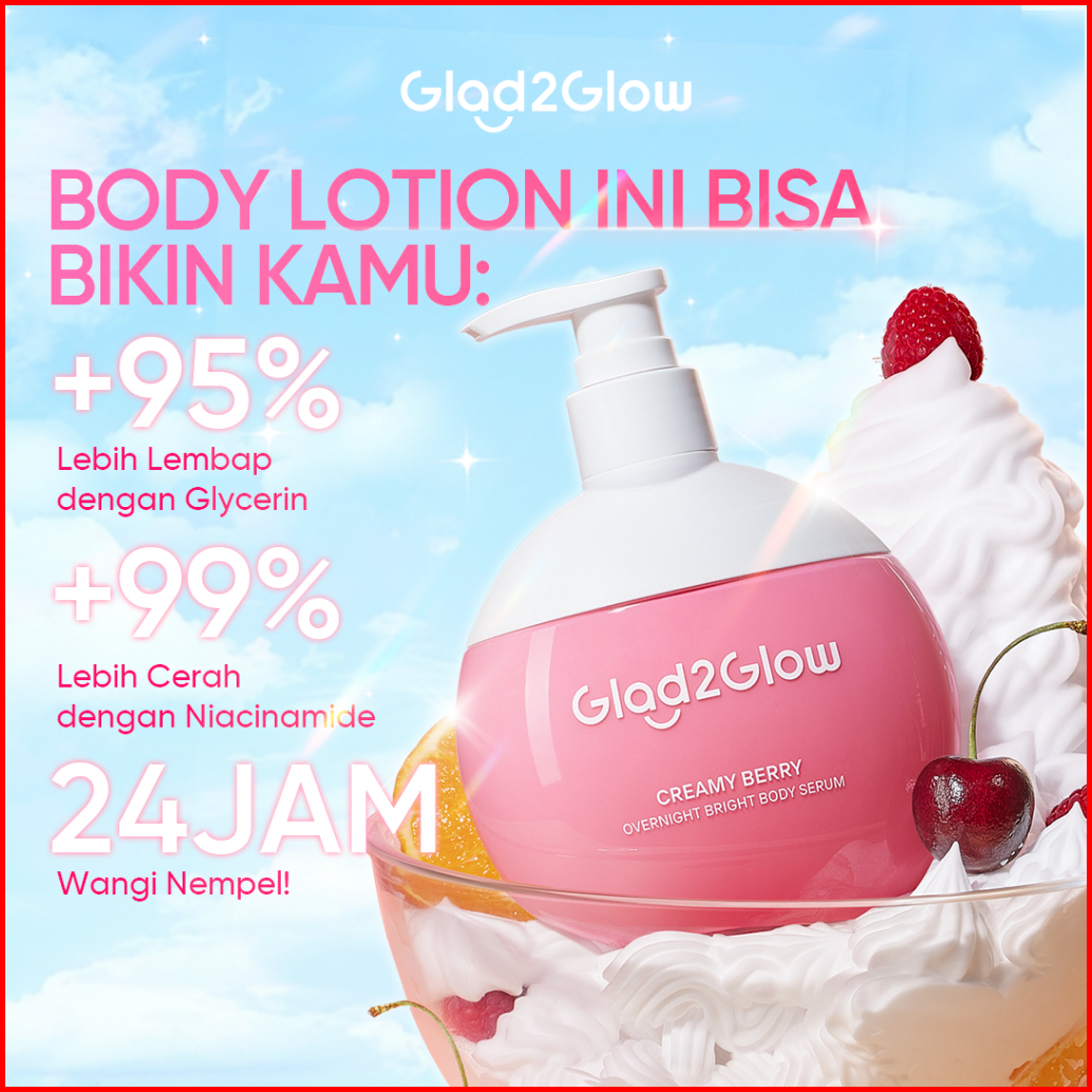 100 Ori Body Serum Glad2glow Creamy Berry Overnight Bright Body Serum 300ml Glad2glow Whitening Body Lotion Body Cream H