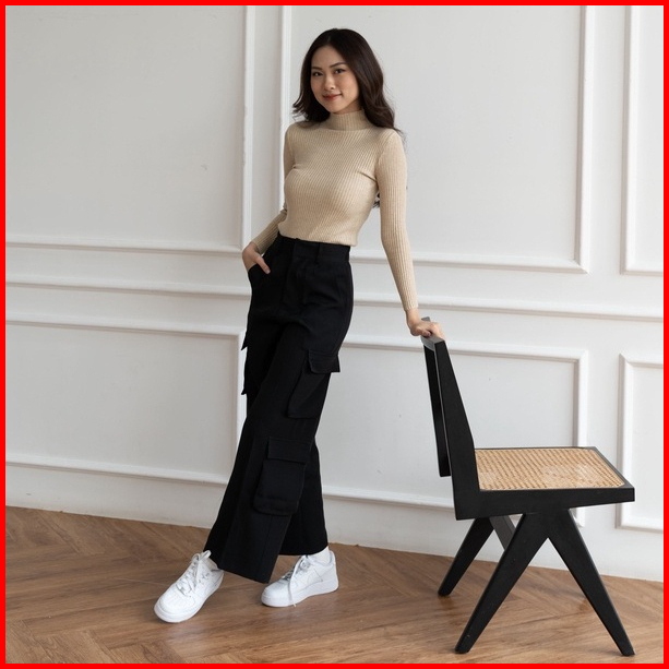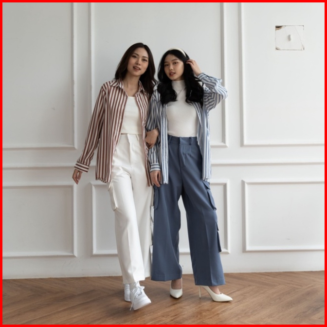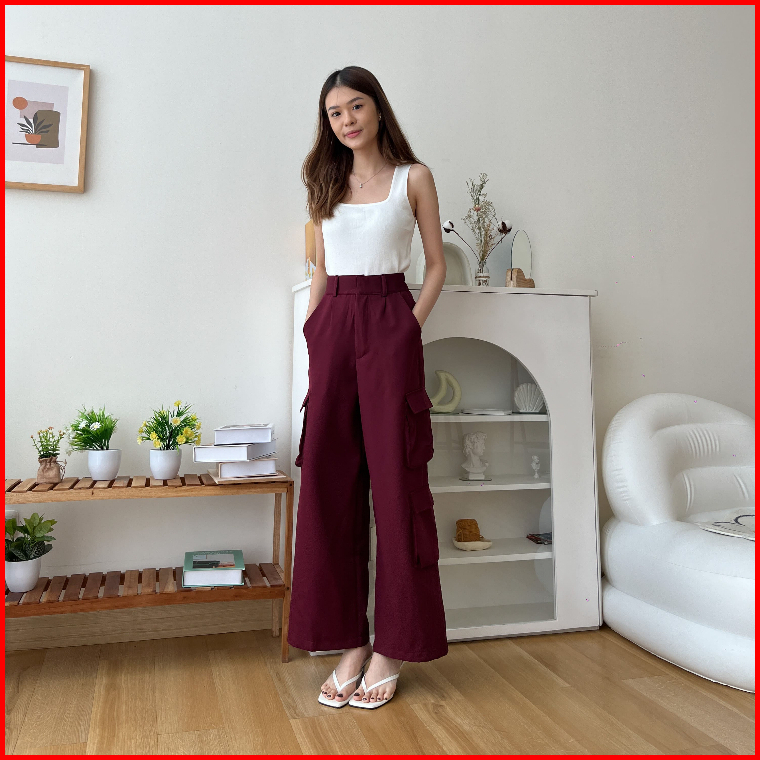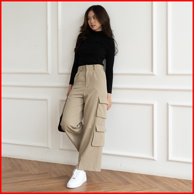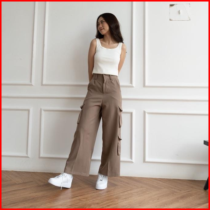 Kaorithelabel Moro Cargo Wide Pants Celana Panjang Korean Wanita - Cargo Pants - High Waist Casual