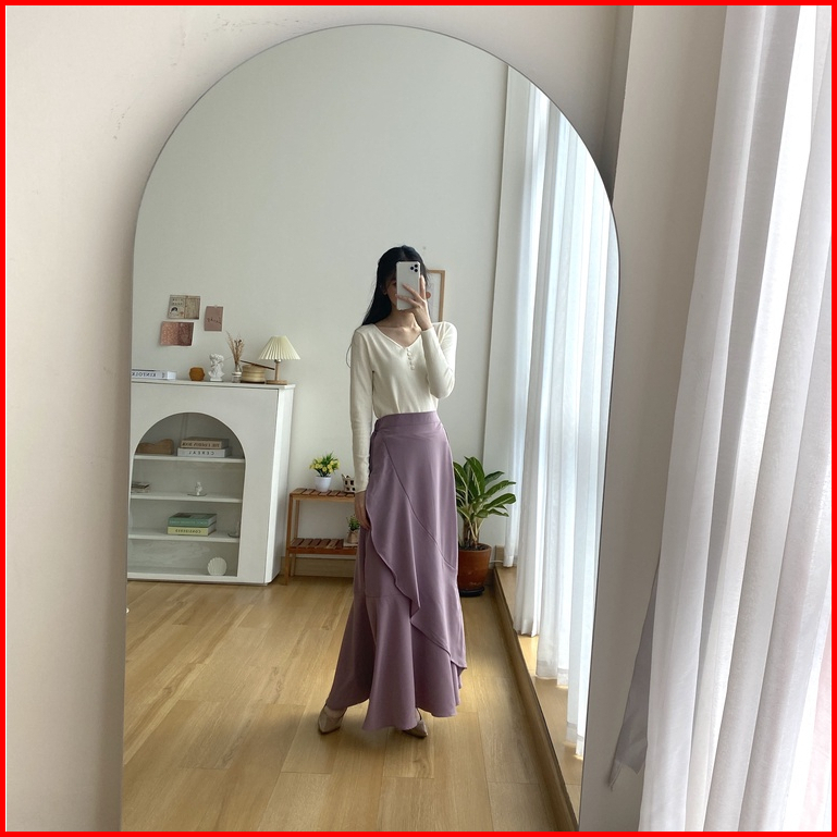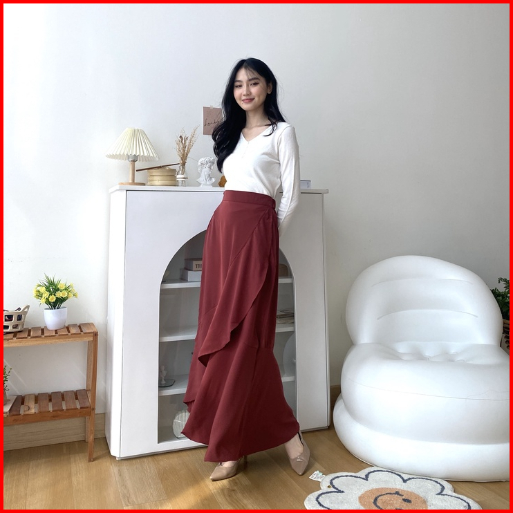 Kaorithelabel Reina Long Skirt Ramadhan Collection - Rok Lebaran - Fashion Muslim - Korean Casual Skirt - Rok Polos Wani