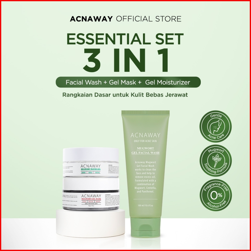 Acnaway Bundle Essential Set 3 In 1 - Mugwort Gel Facial Wash Mugwort Gel Mask Mugwort Water Gel