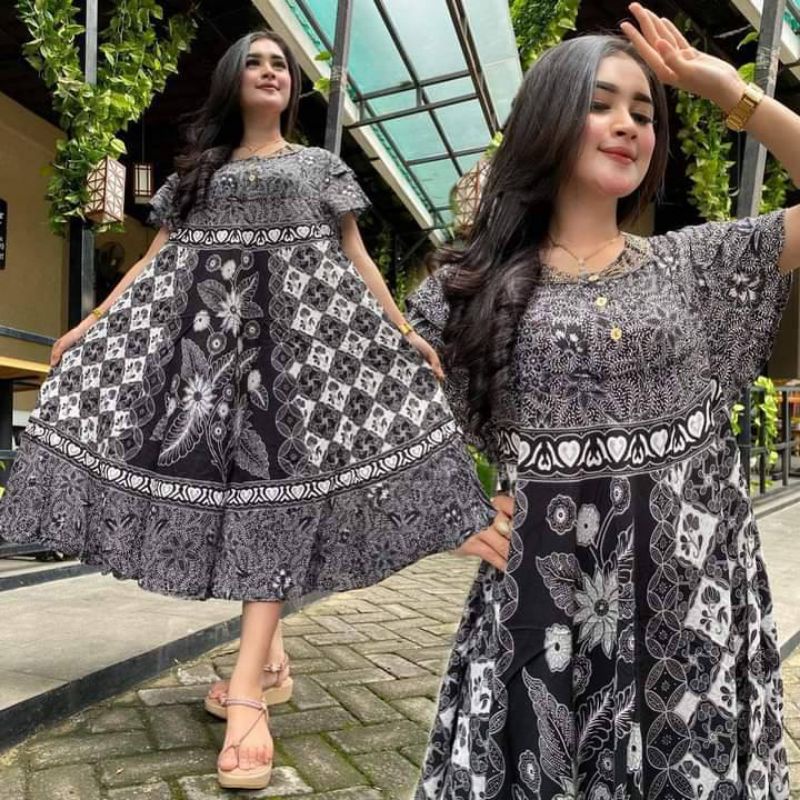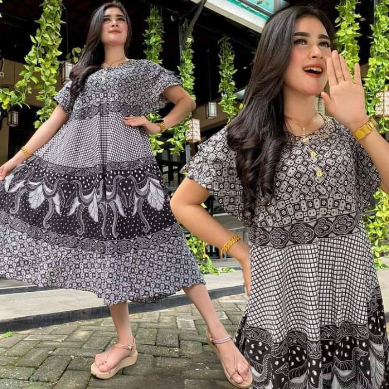 daster jumbo sogan clock daster sultan payung batik pekalongan latte terbaru kencana busui lengan pendek pakaian kekinian XXL ld 120 rayon adem bumil kancing depan sexy 2023