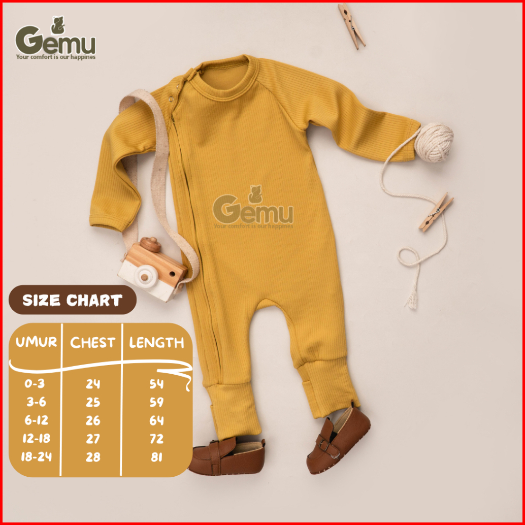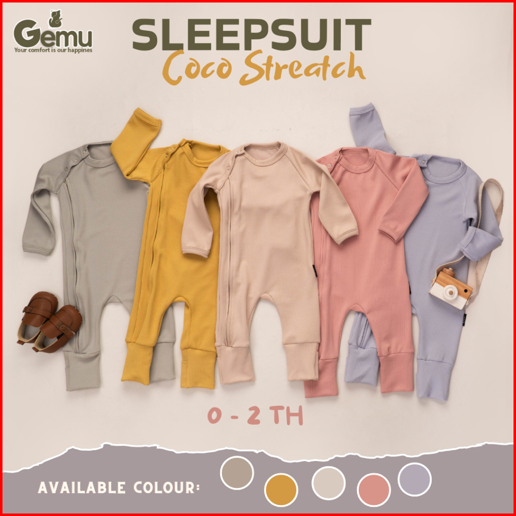 Gemu Sleepsuit Jumperbaby Piyama Lengan Panjang Baju Tidur Laki-laki Perempuan Unisex Resletting 0-2 Tahun Premium