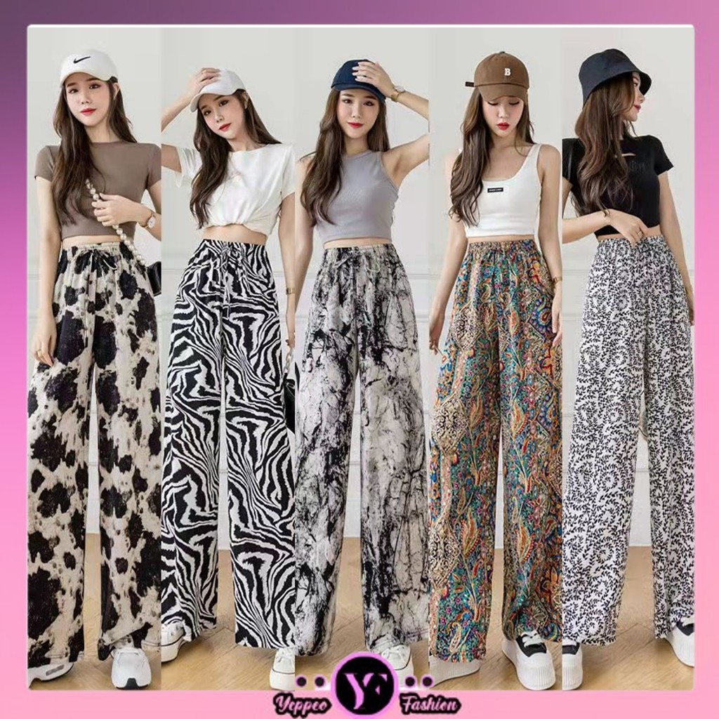 •YF• CPG1547 Celana Panjang Wanita Kulot Motif Lukisan Modis Longgar Bahan Halus Adem Super Jumbo