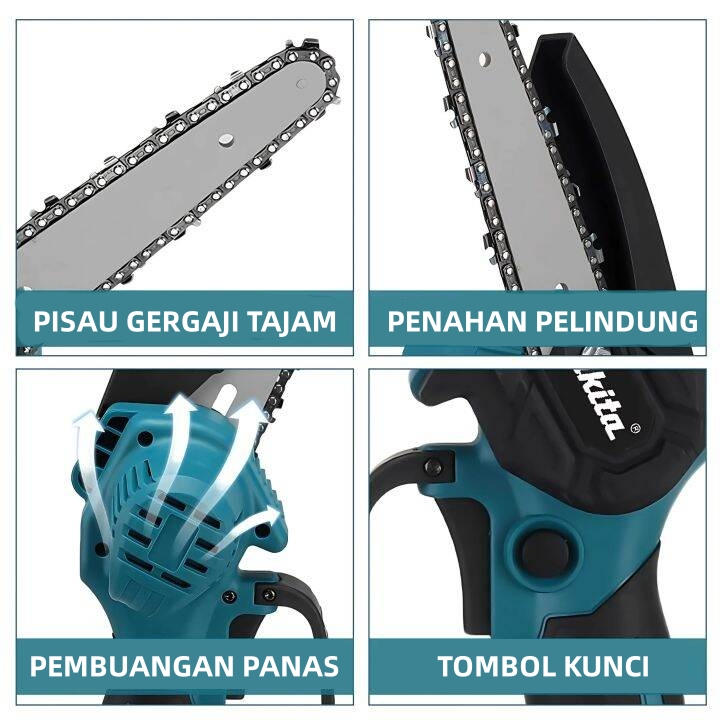 MAKITA Chainsaw 6 inch Cordless Gergaji Pemotong Kayu Gergaji Listrik 2 Baterai Handheld Chain Saw Gergaji Mini Portabe