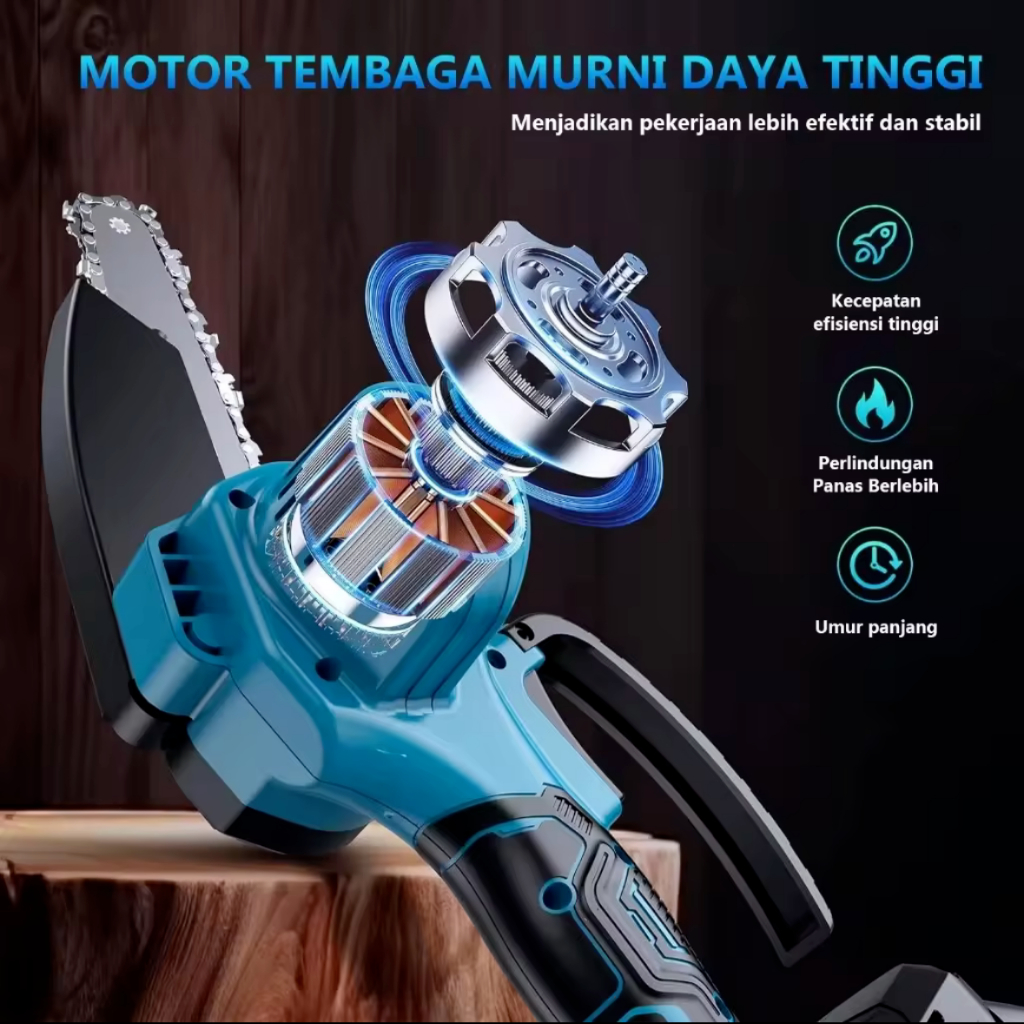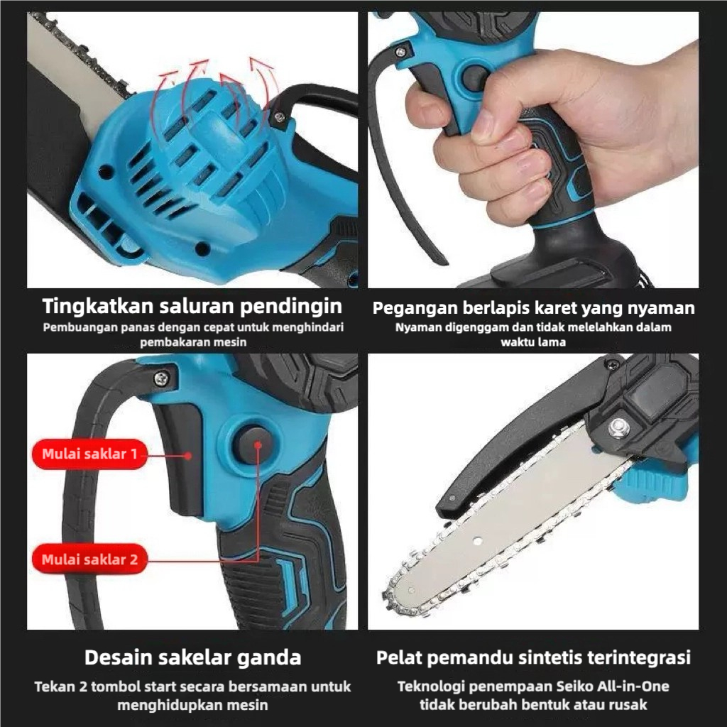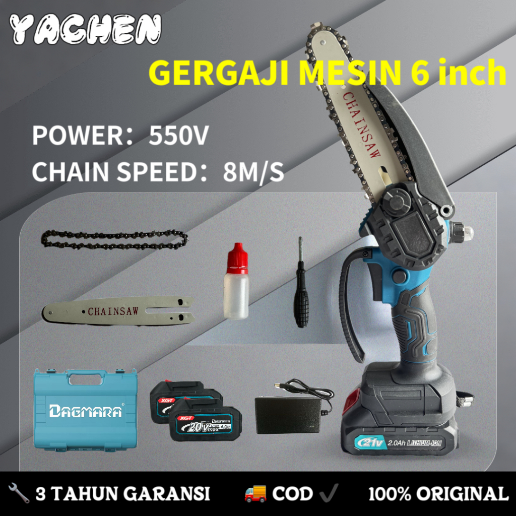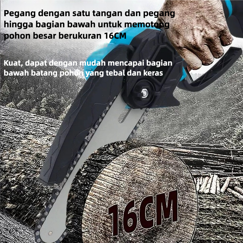 YACHEN Gergaji Mesin 6 Inch Nirkabel Mini Gergaji Listrik Baterai Lithium Portabel Gergaji Rantai Pegangan Tangan untuk