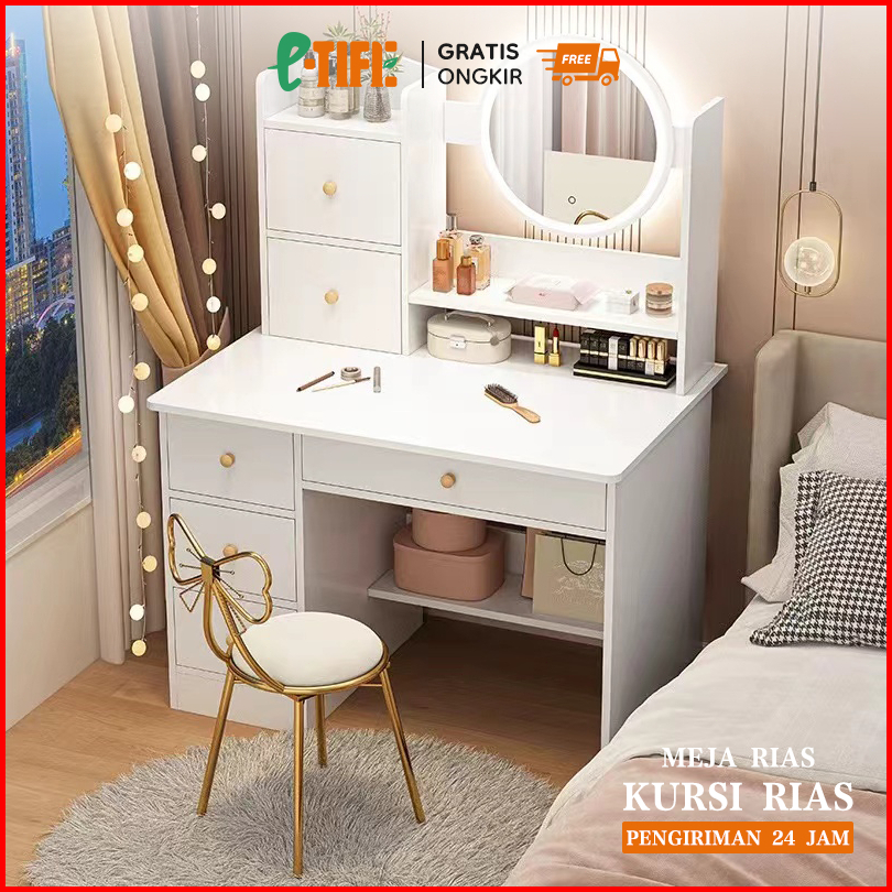 E-tife Meja Rias Dengan Cermin Meja Rias Minimalis Meja Penyimpanan Meja Kosmetik Meja Kamar Tidur