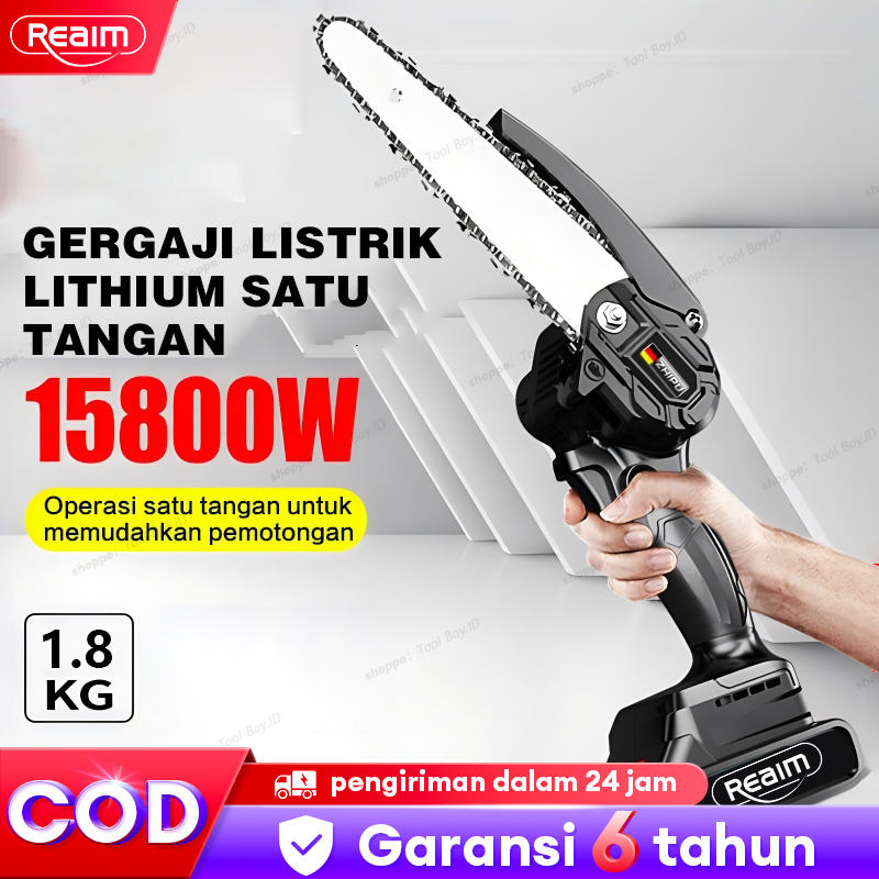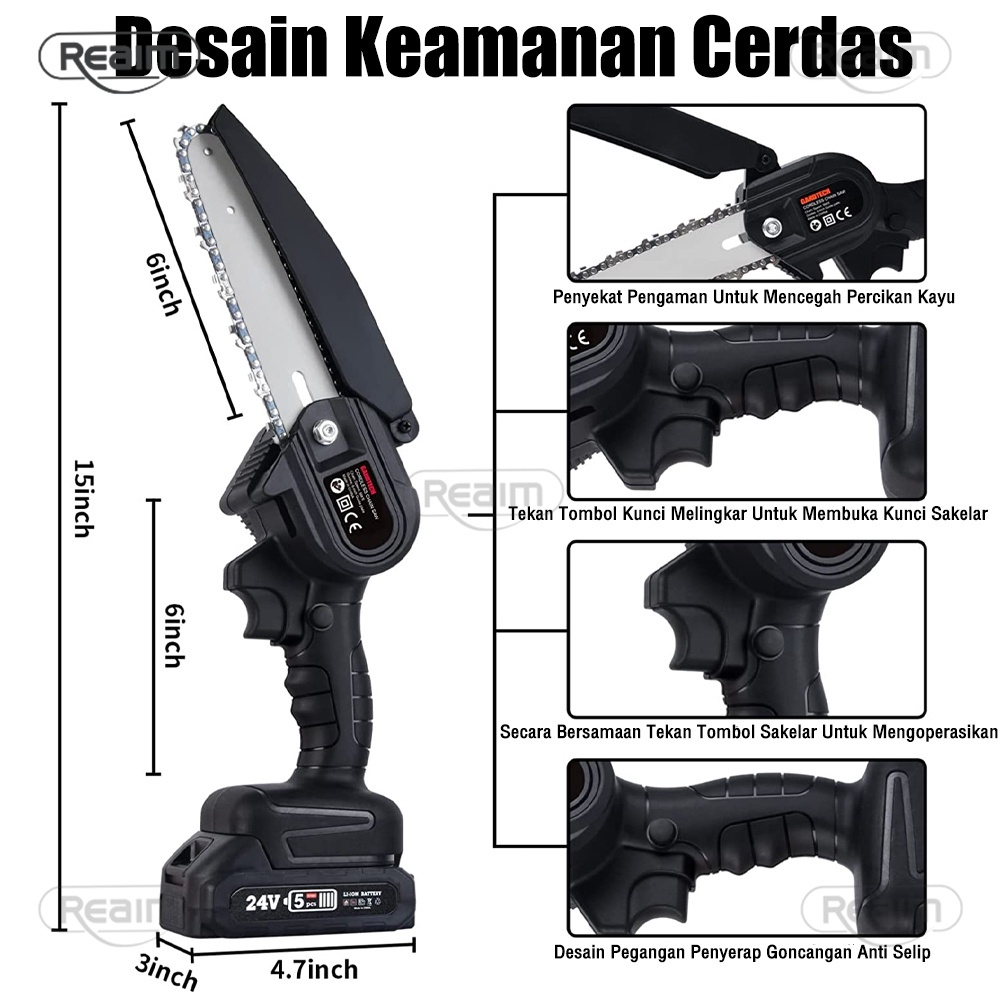 Reaim Chain Saw Cordless 2 baterai 6 Inch Chainsaw Cordless Chainsaw Gergaji Rantai Elektrik Mini Portable Genggam Lithi