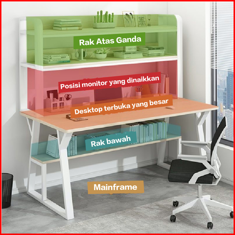 E-tife Meja Belajar Dengan Rak Meja Kerja Meja Komputer Meja Gaming Meja Kantor Minimalis
