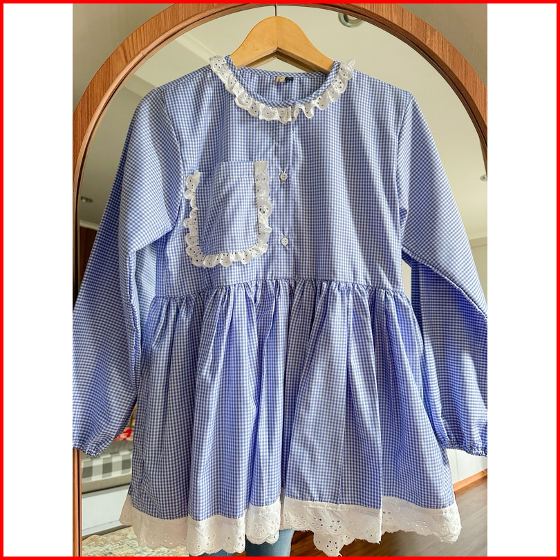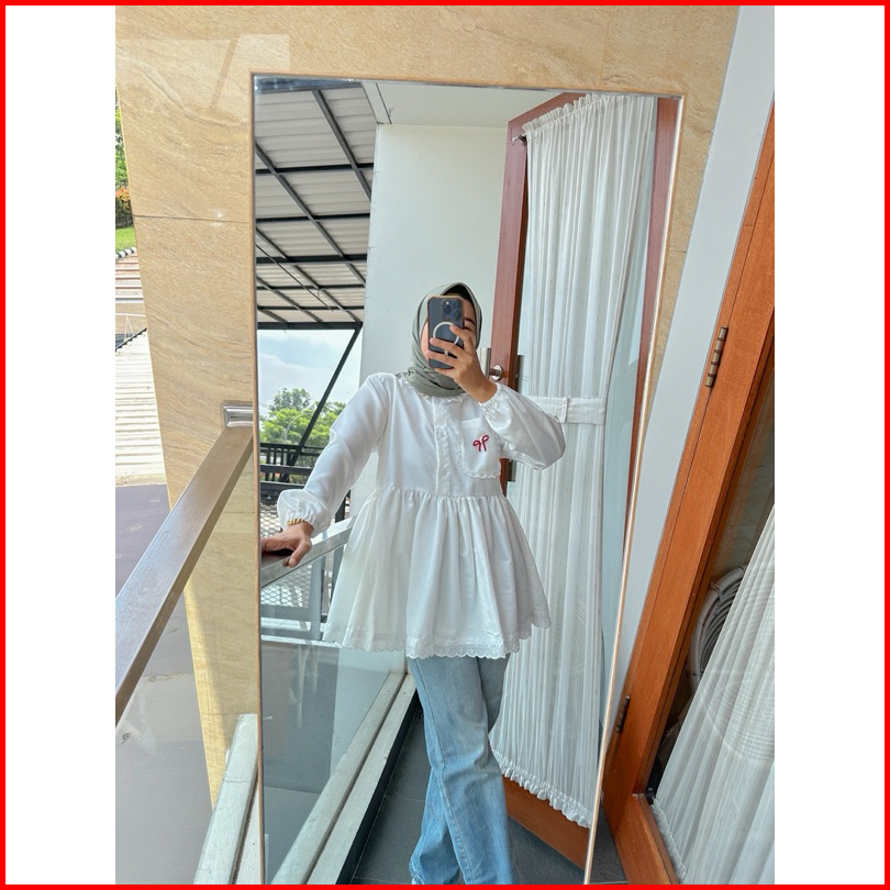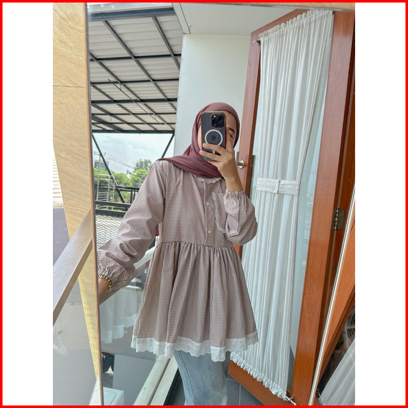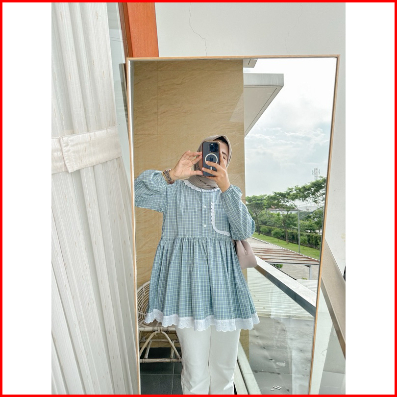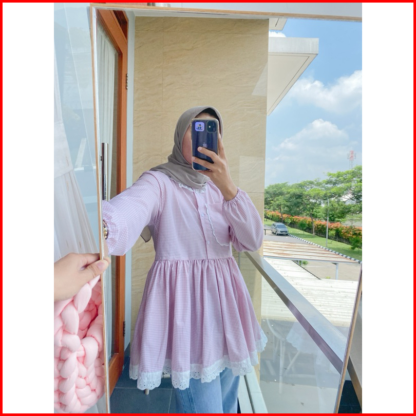 Sadiya Blouse Blouse Lucu Kekinian Renda Katun Garis Garis Kotak