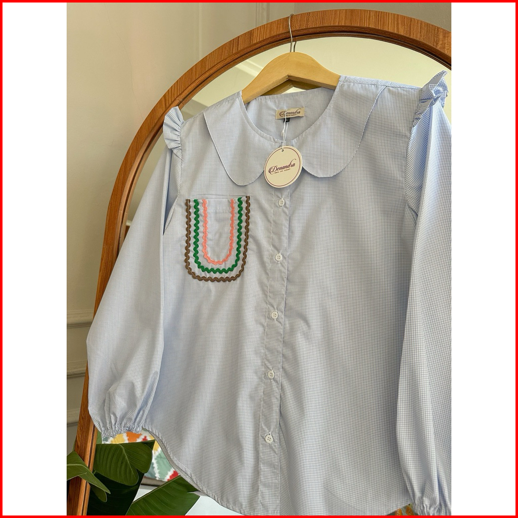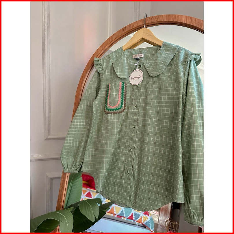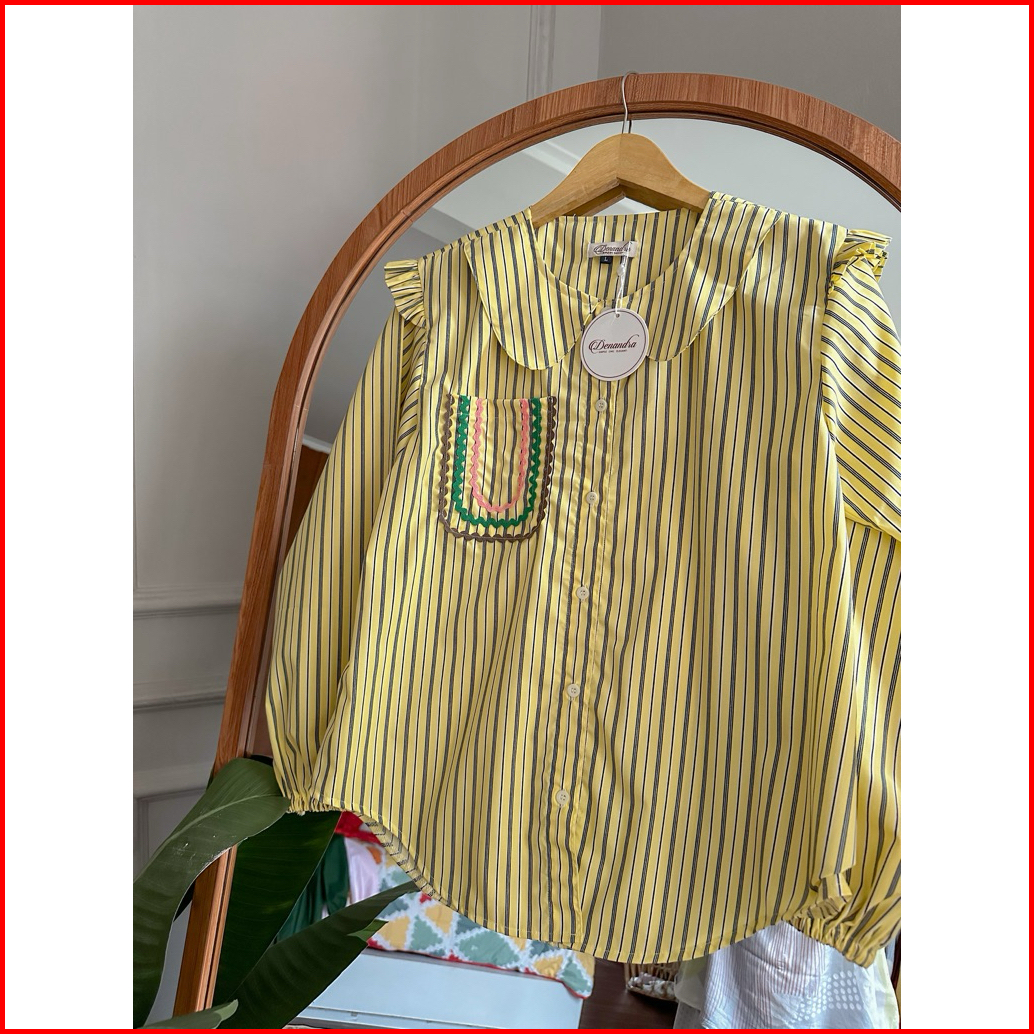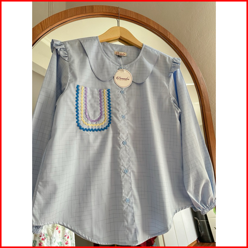 Ayumi Kemeja New Arrival Blouse Lucu Bahan Katun Renda Kerah Collar Korean Blouse