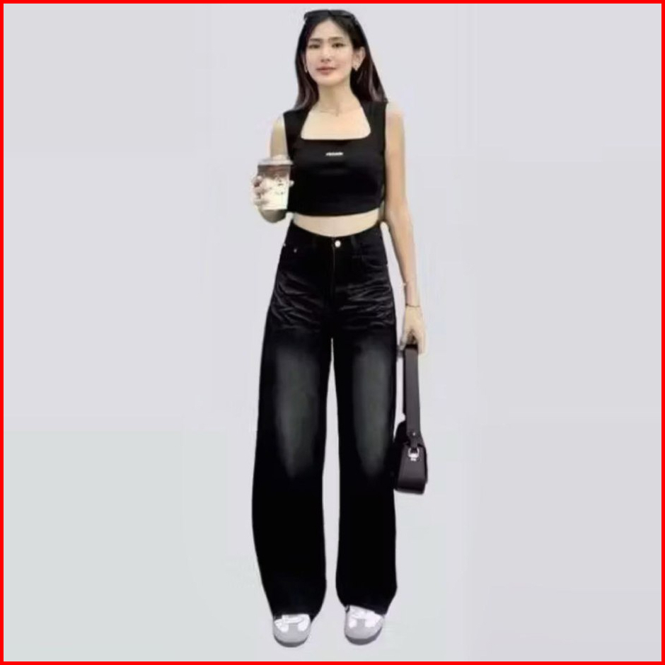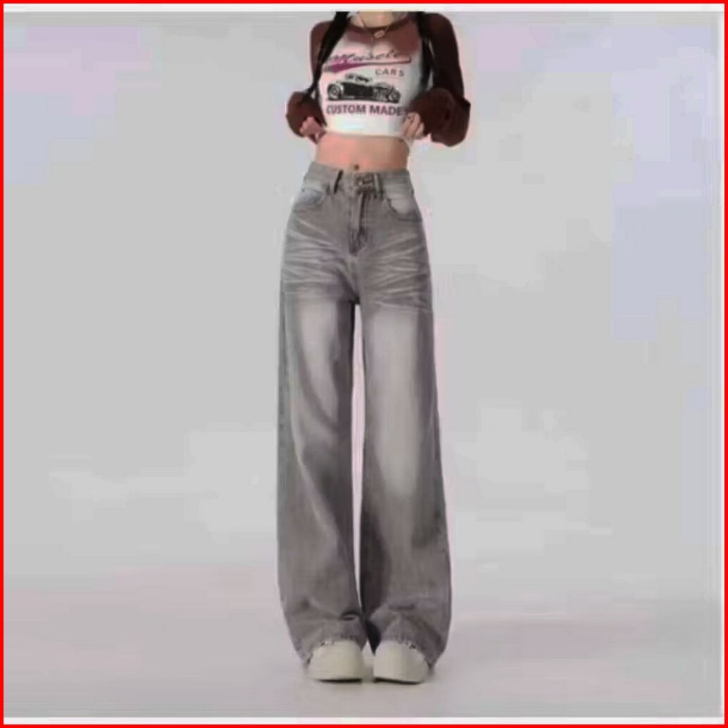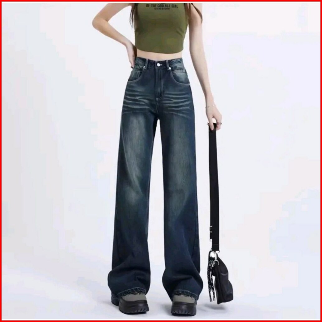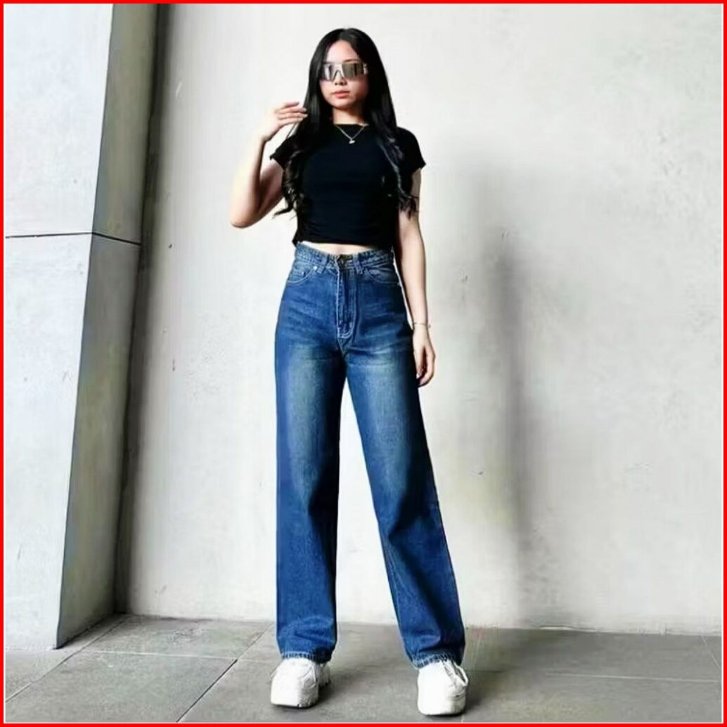 Highwaist Baggy Loose Jeans Wanita Jumbo - Ultra Highwaist Baggy Loose Jeans Weekend Overtime Korean Style - Jeans Wisce
