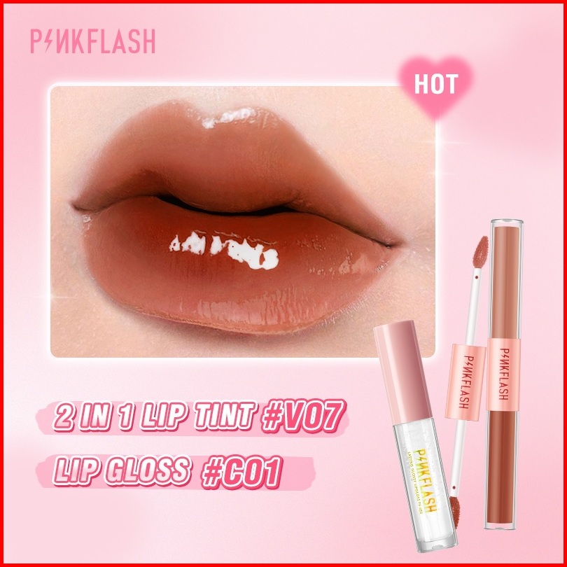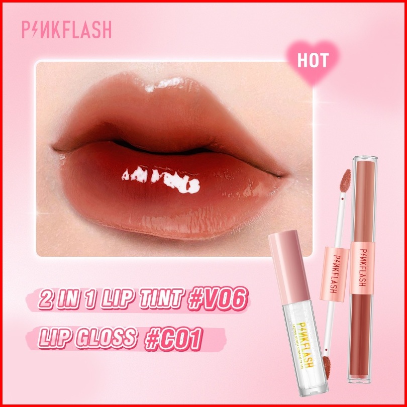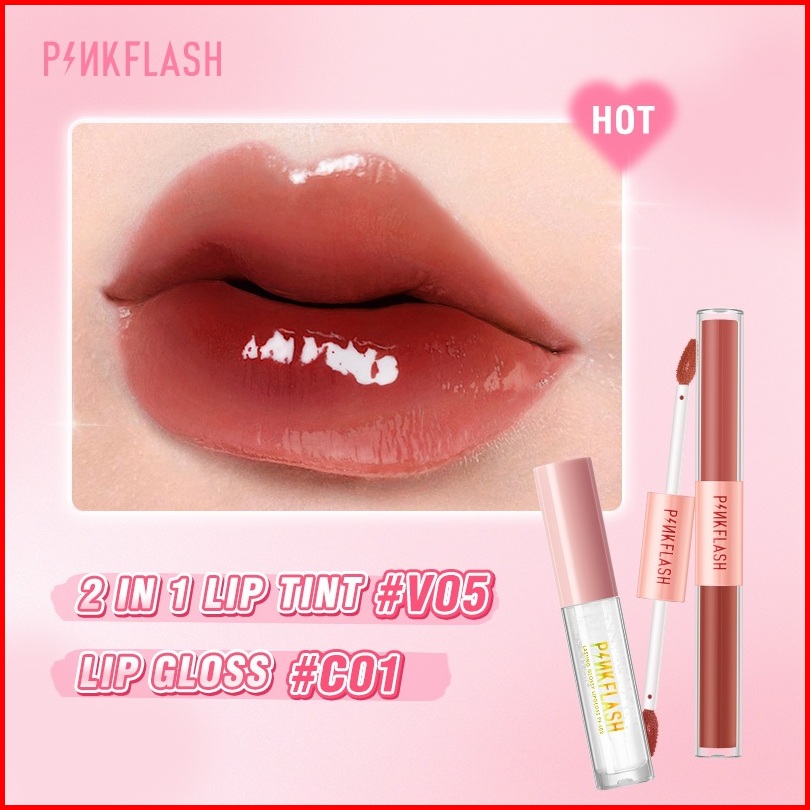 Pinkflash 2pcs Set Glossy Juicy Lips Set 2 In 1 Matte Velvet Liquid Lipstick Lip Tint Lip Gloss Ombrelips