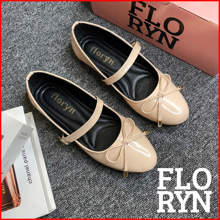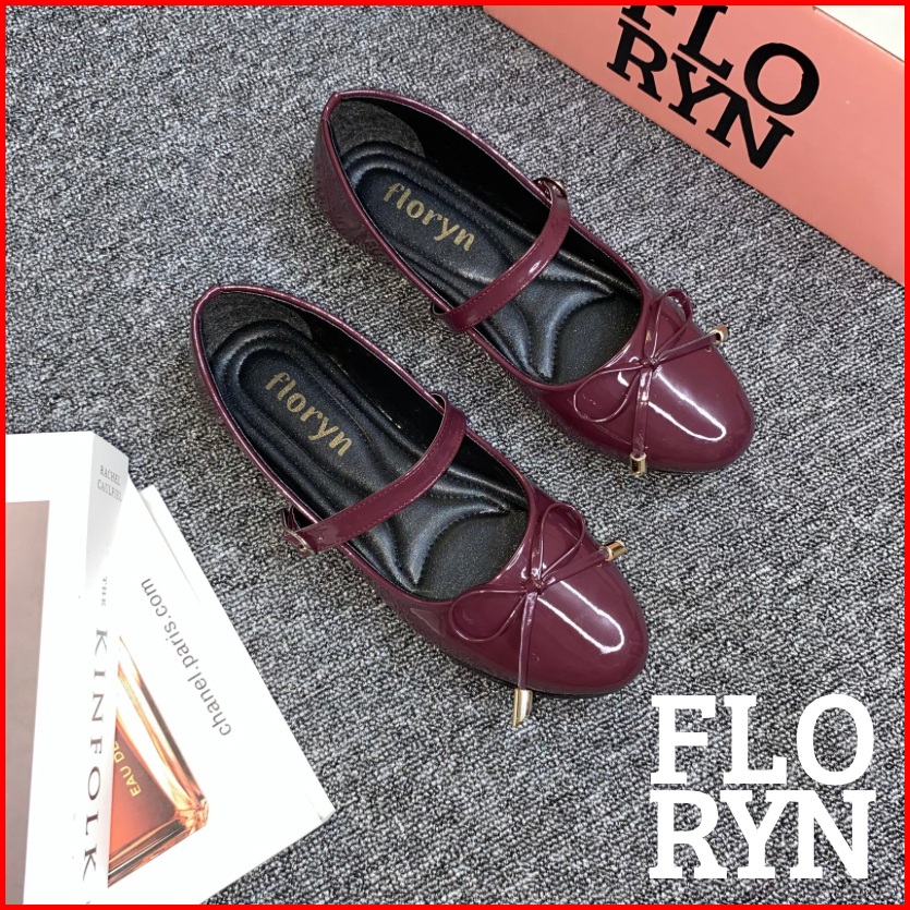 Floryn Shoes - Flatshoes Anna Burgundy Ballerina Premium Wanita Tali Pita Datar Basic Simpel Casual