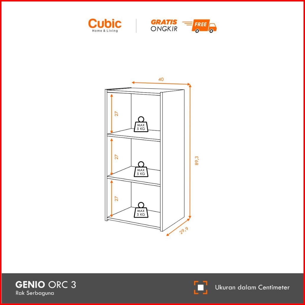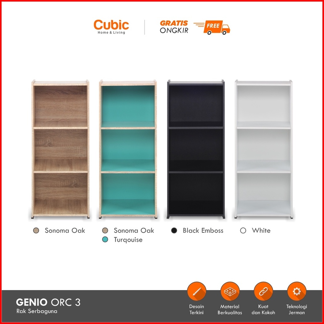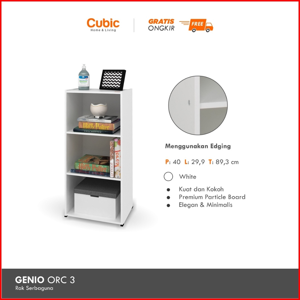 Cubic Rak 3 Susun Minimalis Lemari Buku Serbaguna Genio Orc 3 - Motif Kayu