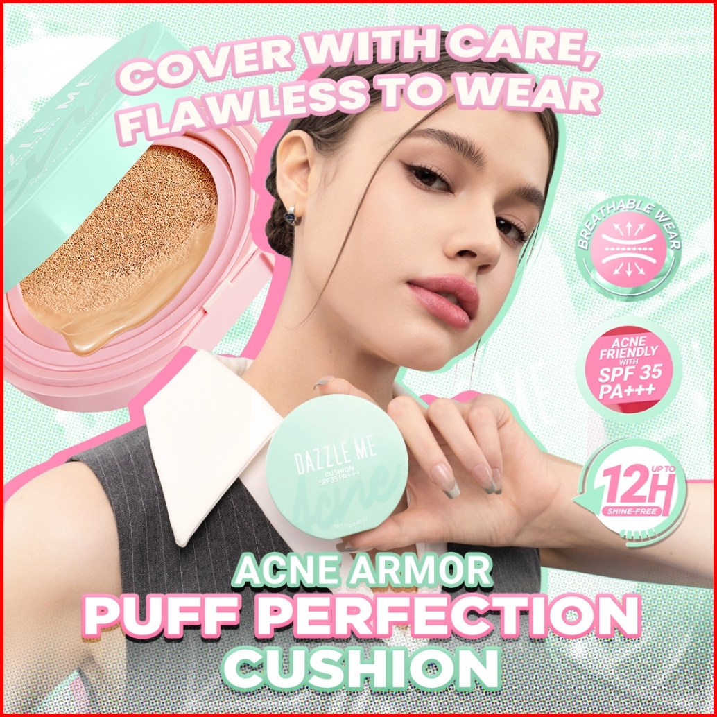 New Launch Dazzle Me Acne Armor Puff Perfection Cushion Untuk Acne Prone Skin Dan Kulit Berminyak Tahan Lama 12 Jam Spf