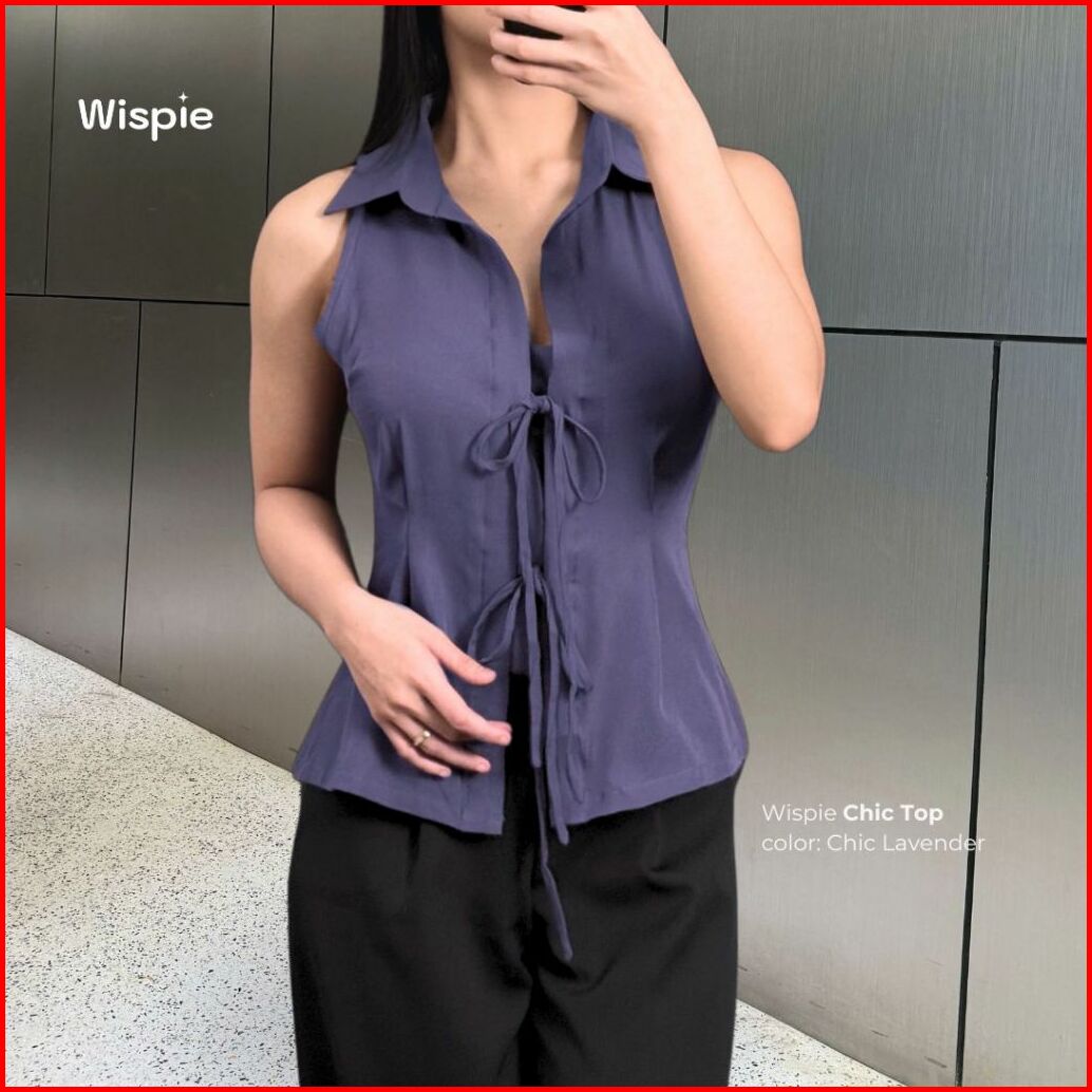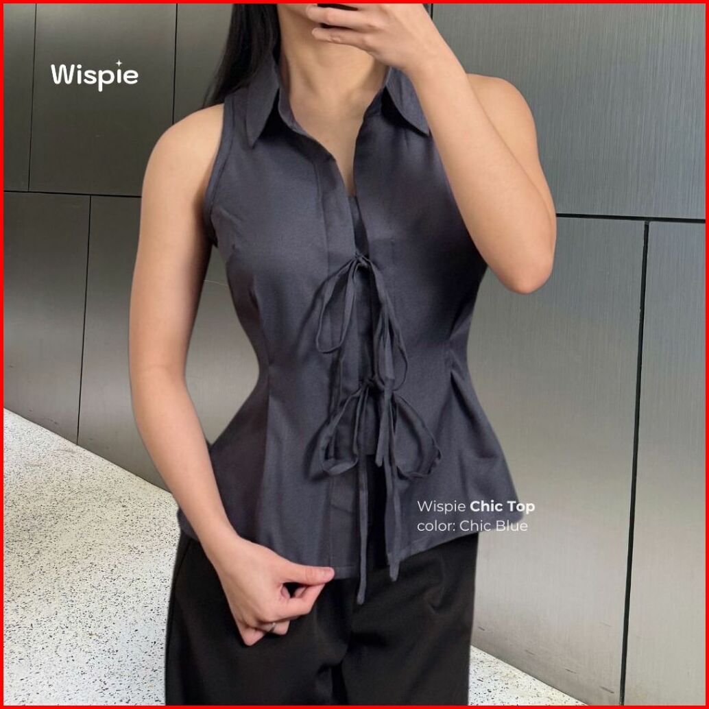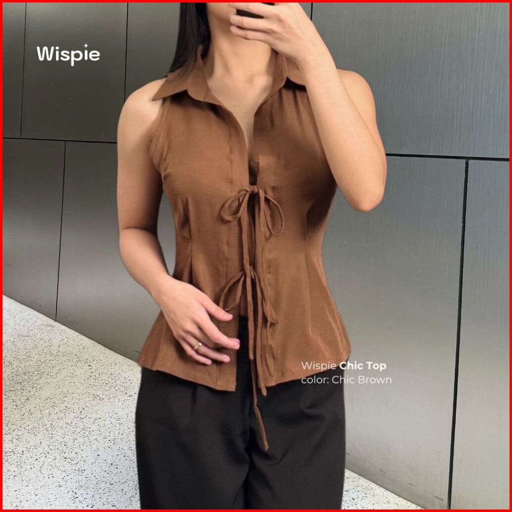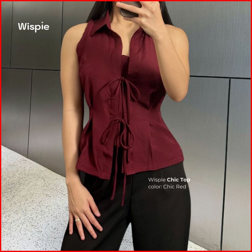 Wispie Chic Top Atasan Wanita Tanpa Lengan Tanktop Vest Pita Merah Biru Hijau Cokat