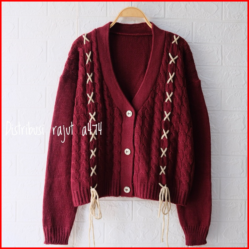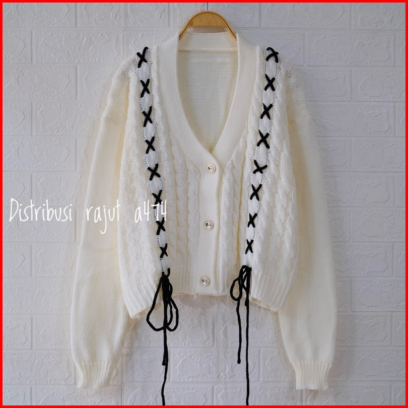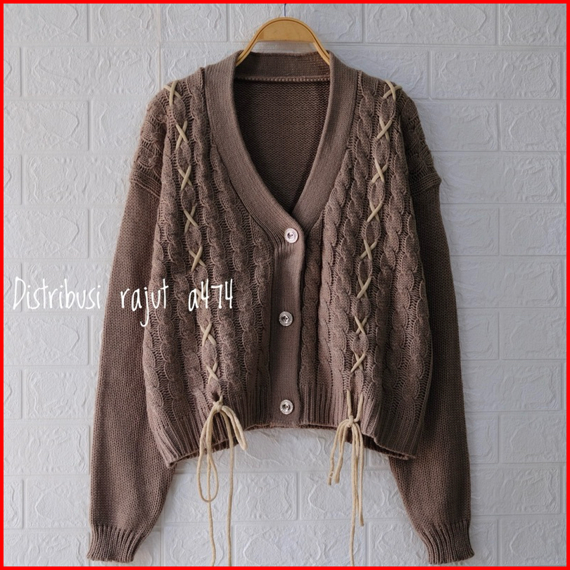 Amora Cardigan Rajut Tebal Motif Tali Pita Depan Wanita Lengan Panjangn