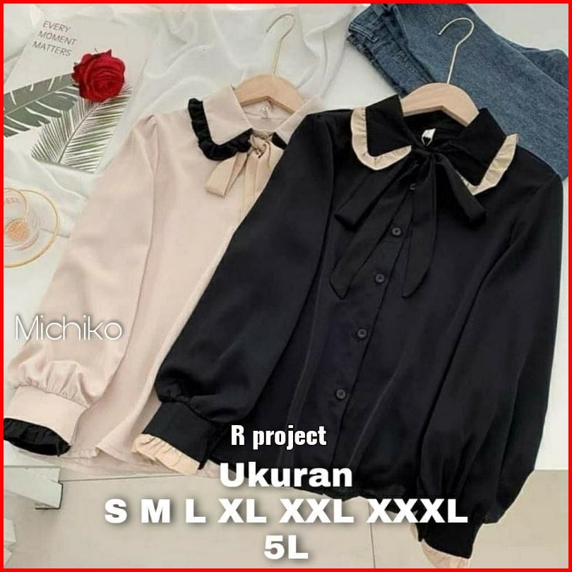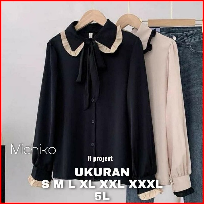 Cuci Gudang Michiko Blouse Jumbo 5l Xxxl Xxl Xl L M S Atasan Big Size - Kemeja Korea