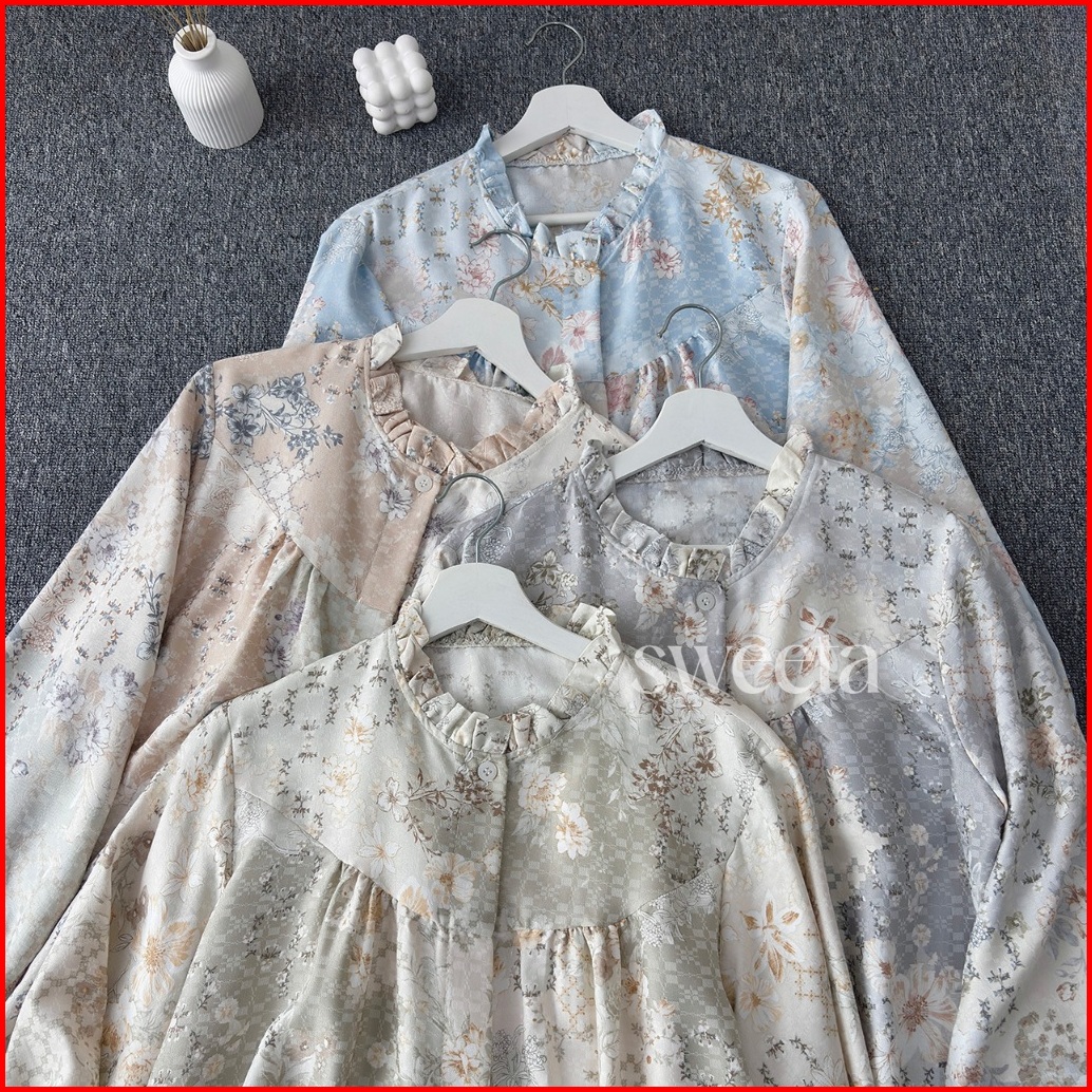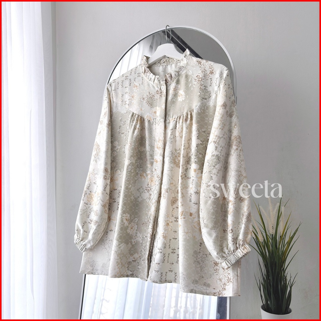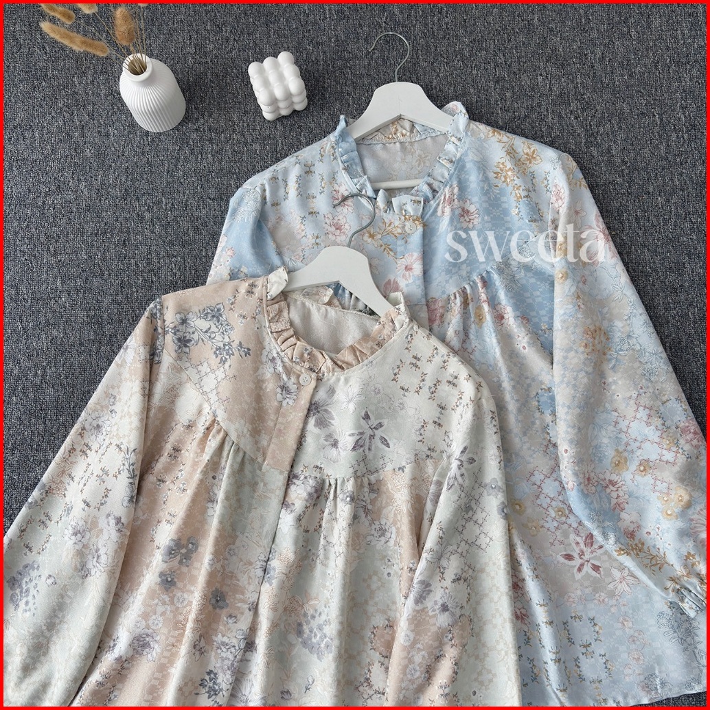 Sweeta Blus U Rample Flower Jacquard Ld 115 Cm Korea Style Atasan Pakaian Wanita