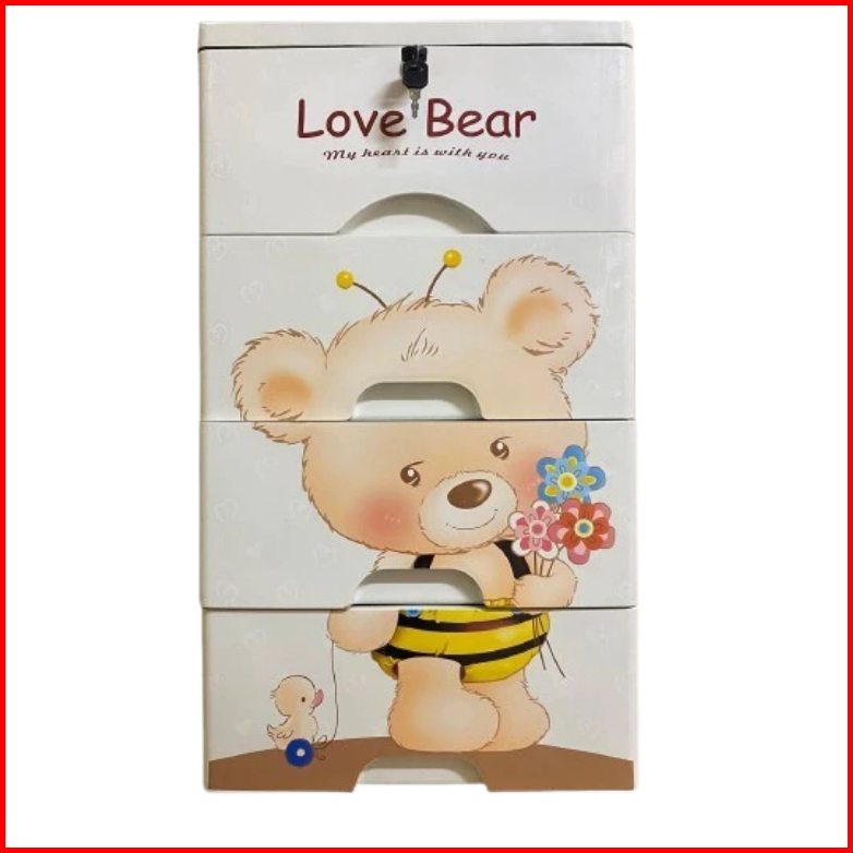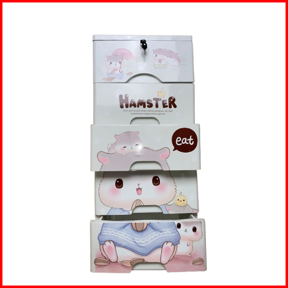 Lemari Pakaian Anak 4 Tingkat 5 Tingkat Lemari Plastik Karakter Penyimpanan Pakaian Baby