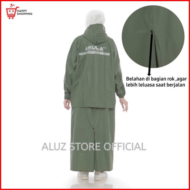 Jas Hujan Wanita Rok Mantel Hujan Setelan Jaket Dan Rok Bahan Pvc Tebal Kuat Lentur By Akula